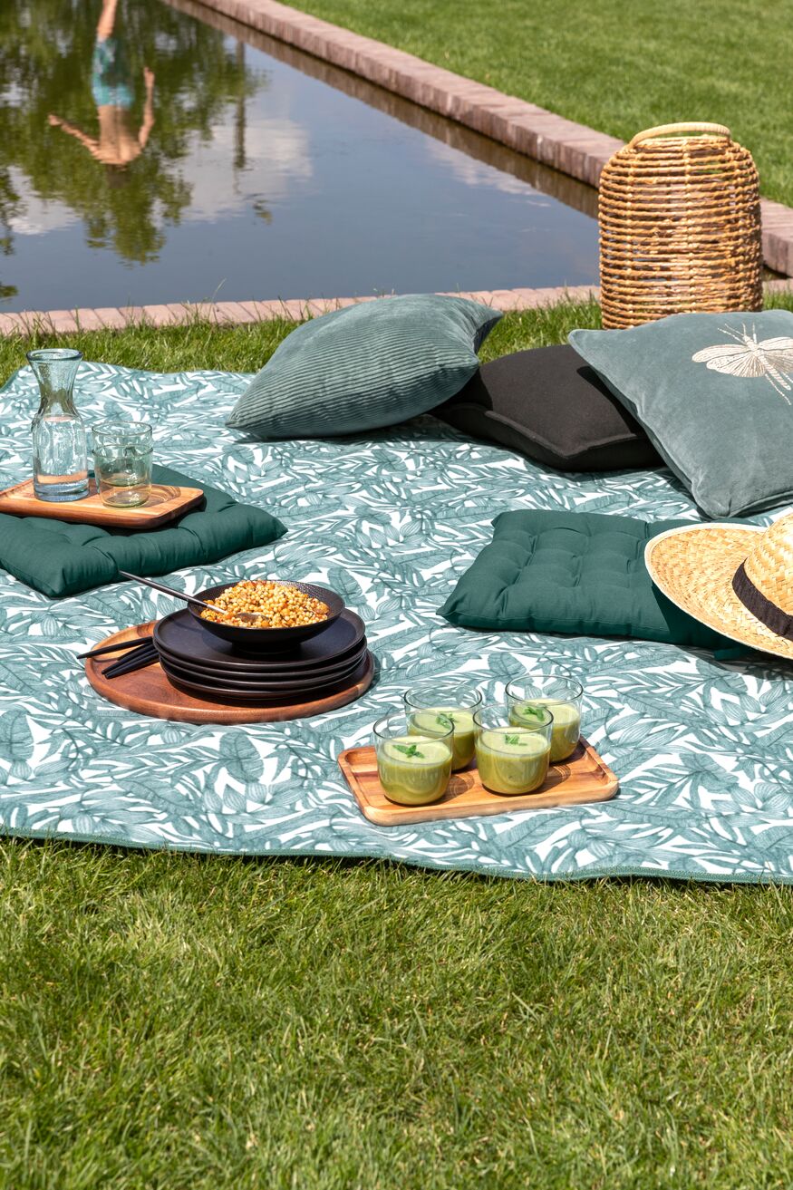 Mistral Home Picknickkleed-200x200 cm-Met handvat-Botanical groen, wit