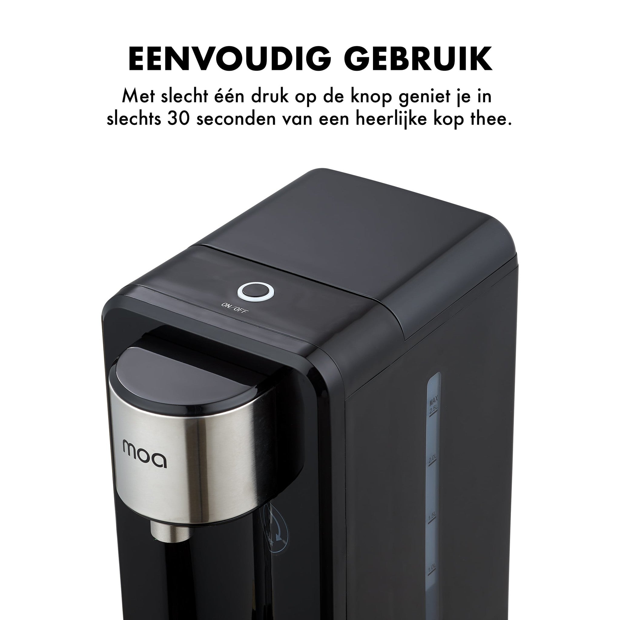 Van het merk MOA een prachtige instant cooker met boiler en water dispenser. De traditionele waterkoker kent iedereen. Echter, waarom zou je nog lang op kokend water wachten, wanneer je met deze waterdispenser kokend water genereert met één druk op de knop? Ideaal voor het zetten van thee, maar ook soep of kokend water voor de pasta, aardappels of groente. Supersnel klaar en perfect op temperatuur. Koken zal vele malen sneller gaan als het water niet nog eerst hoeft te koken. Daarbij geef je met dit apparaat jouw keuken een moderne en luxe uitstraling. Het is namelijk ook een bijzonder fraai apparaat en echte blikvanger. De Instant Cooker is gemakkelijk te reinigen. Daarbij is de waterdispenser energiezuinig, heeft een droog kook bescherming en twee ingebouwde thermostaten. Met een maximale waterinhoud van 2,5 liter kan je aardig uit de voeten in de keuken.