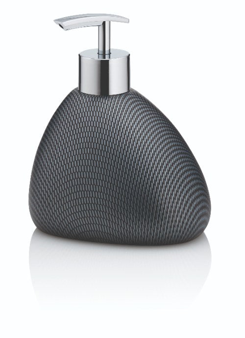 De Moiree zeeppomp van Kela is gemaakt van keramiek en heeft een unieke vorm. Daarnaast heeft het patroon een 3D effect waardoor hij er extra bijzonder uit ziet. De pomp is gemaakt van verchroomd kunststof en is voorzien van een speciaal mechanisme dat druppelen tegen gaat. Draai hem eenvoudig los om hem bij te kunnen vullen. De pomp heeft een afmeting van 13,5 cm x 10 cm x 13 cm en heeft een inhoud van 500 ml.
