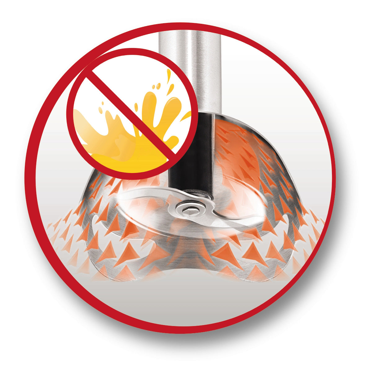 - Antispatbeveiliging houdt de ingrediënten in de kom of pan