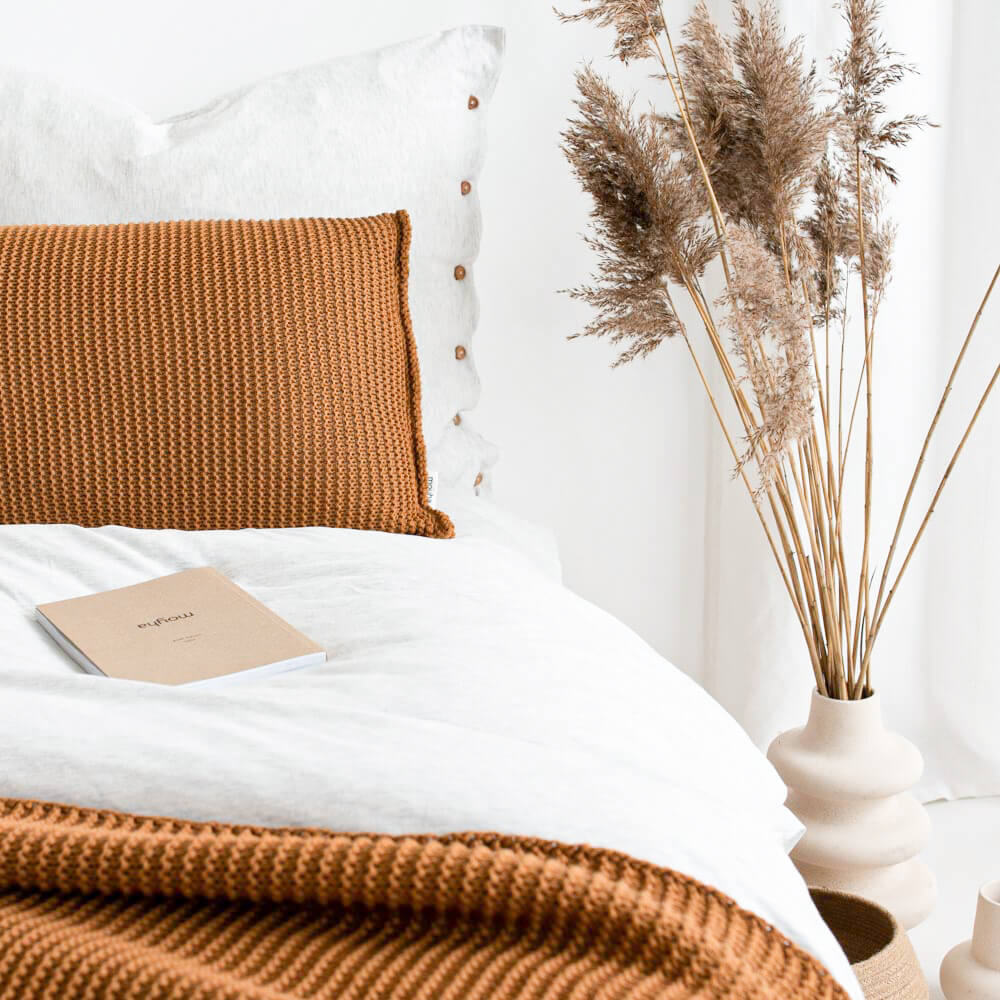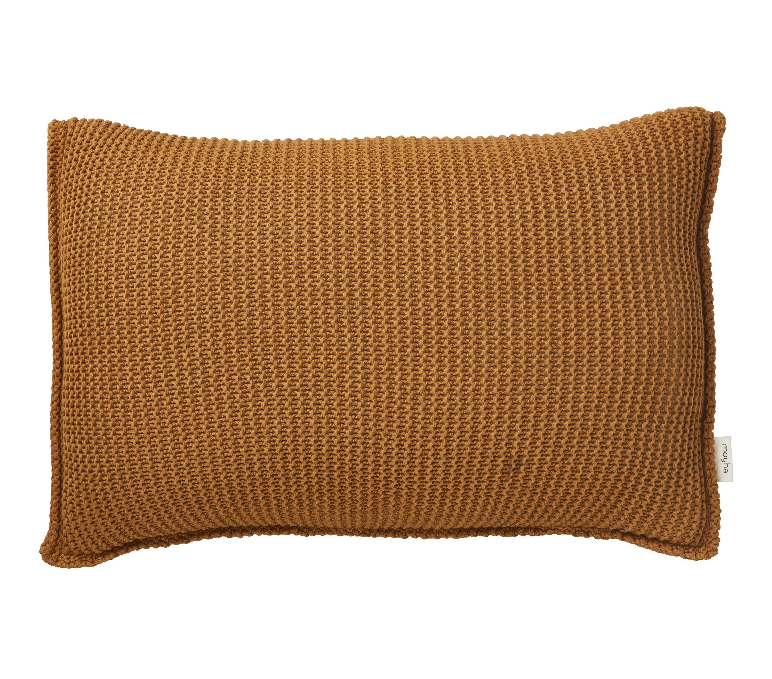 Een fijn gebreid kussen in een warme kaneel tint. Heerlijk zacht en comfortabel in de bank. Het kussen is gemaakt van een mix van 53% katoen en 47% acryl. Het katoen zorgt ervoor dat het een heerlijk zacht kussen is. Het acryl zorgt ervoor dat het kussen zijn mooie vorm behoudt.