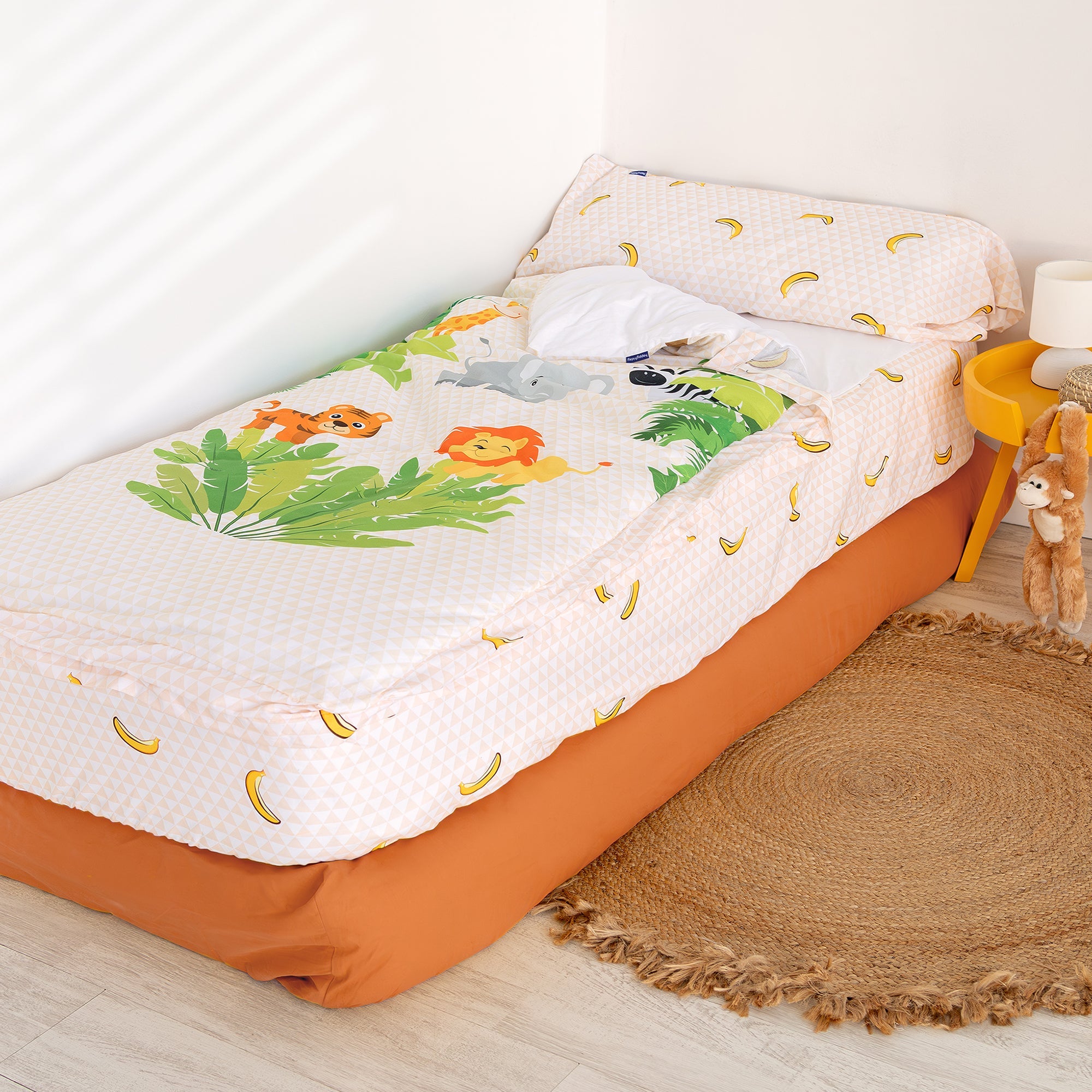 Dekbedovertrekken met rits zijn ideaal om kinderbedden op te maken. Het is een dekbedovertrek met geïntegreerde rits die het met het hoeslaken verbindt. Zodra het hoeslaken is bevestigd, sluit de rits het dekbedovertrek alsof het een slaapzak is. Een slim systeem waardoor kinderen de hele nacht lekker ingepakt blijven. Afneembaar: Voor eenvoudig wassen of zomers gebruik bevindt zich aan de achterkant een verborgen rits waarmee de vulling gemakkelijk kan worden in- en uitgehaald. Gemaakt in Spanje van 100 % natuurlijk katoen met 150 draden, zacht, ademend en veilig voor de kinderhuid. De digitale print in hoge resolutie zorgt ervoor dat de kleuren levendig en stralend blijven, zelfs na veel wasbeurten. De vulling van 300 g of vier seizoenen is apart verkrijgbaar voor extra warmte in de winter. Dankzij de verborgen rits is het makkelijk te verwijderen en te wassen, of aan te passen voor koelere nachten. De zijkant met plooi biedt bewegingsvrijheid voor een veilige en comfortabele slaap. Een dekbedovertrek met rits ontworpen om van elke nacht een magisch avontuur te maken.