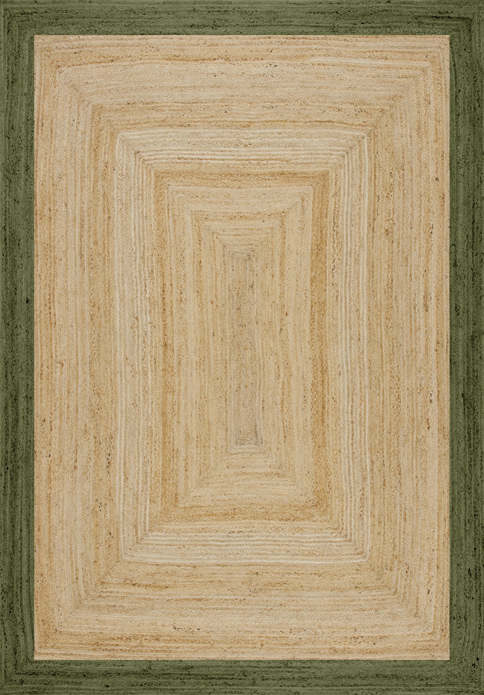 Mrcarpet Jute vloerkleed Rechthoek naturel|Groen 140x200cm