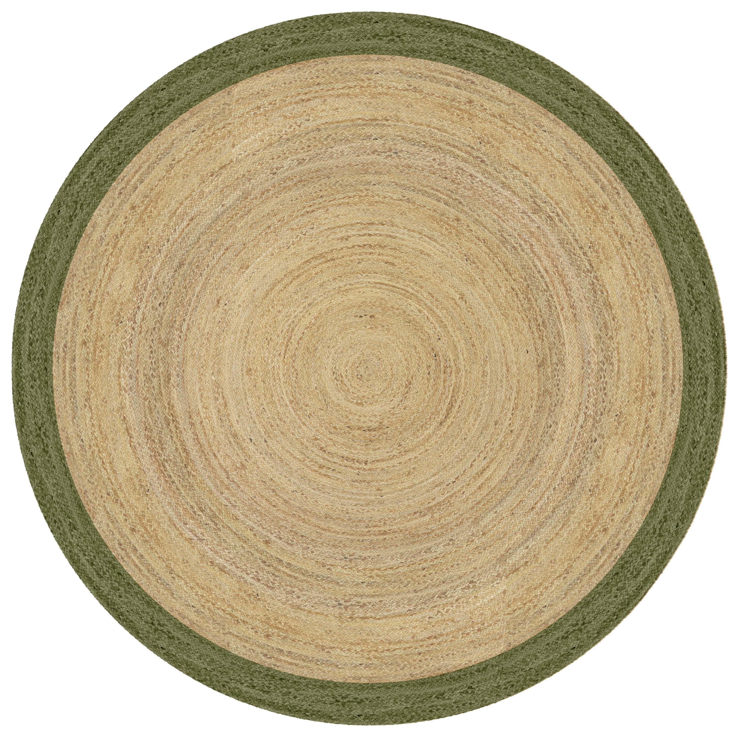 Mrcarpet Rond jute vloerkleed naturel|Groen met rand 240cm