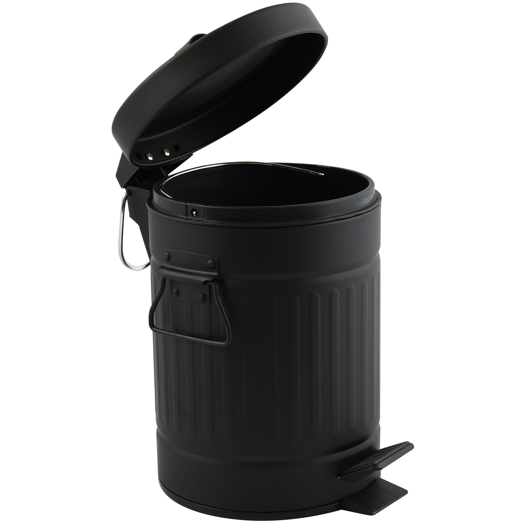 Pedaalemmer voor badkamer en toilet, klein model met inhoud 3 liter. Serie: Industrial. Deze prullenbak is gemaakt van rvs en metaal en heeft een formaat van ca. L17 x H26 cm. Deze kleine pedaalemmers hebben een uitneembare binnenbak. Met deksel en goed pedaal. Past bij de andere artikelen uit de Industrial serie zoals zeeppompjes en toiletborstels.