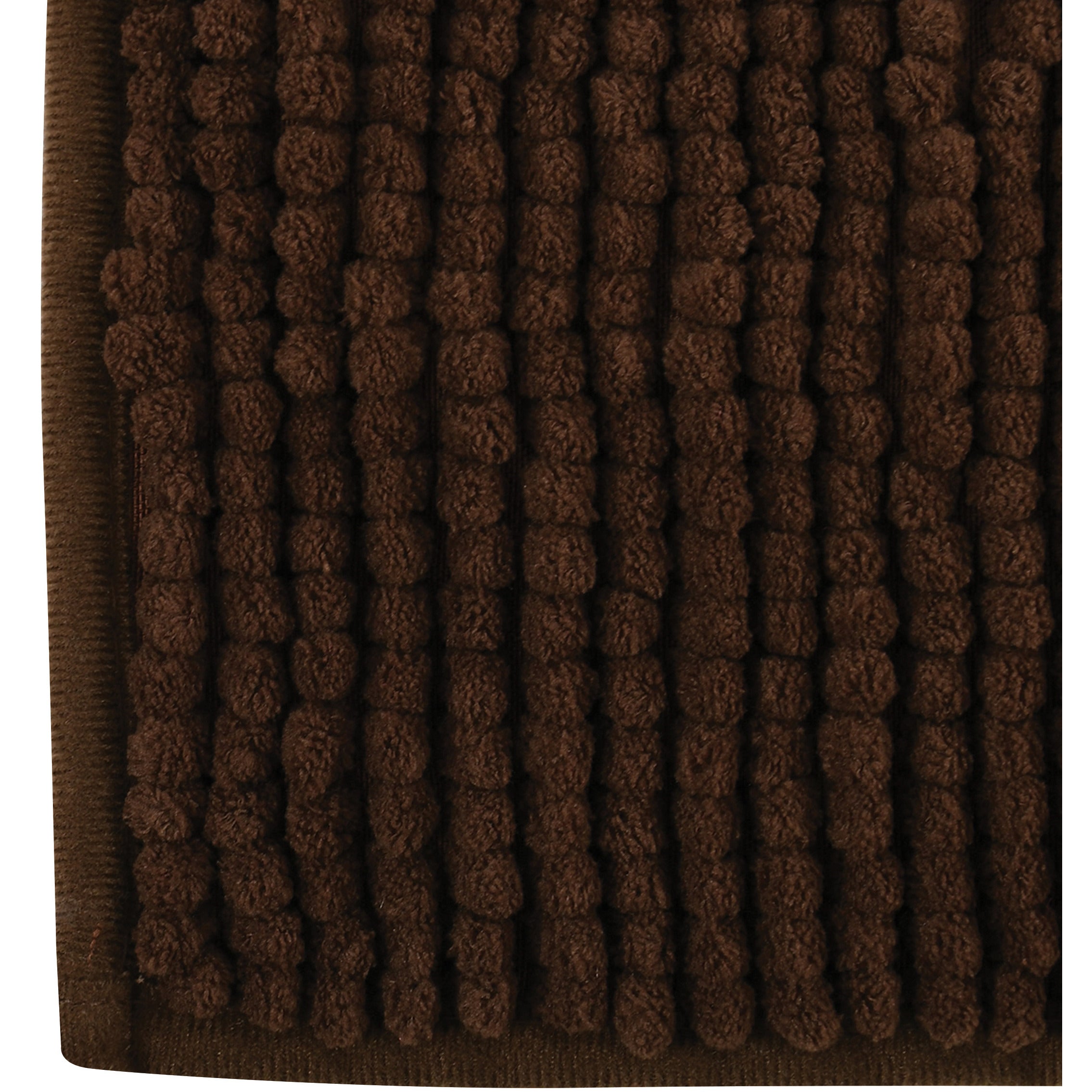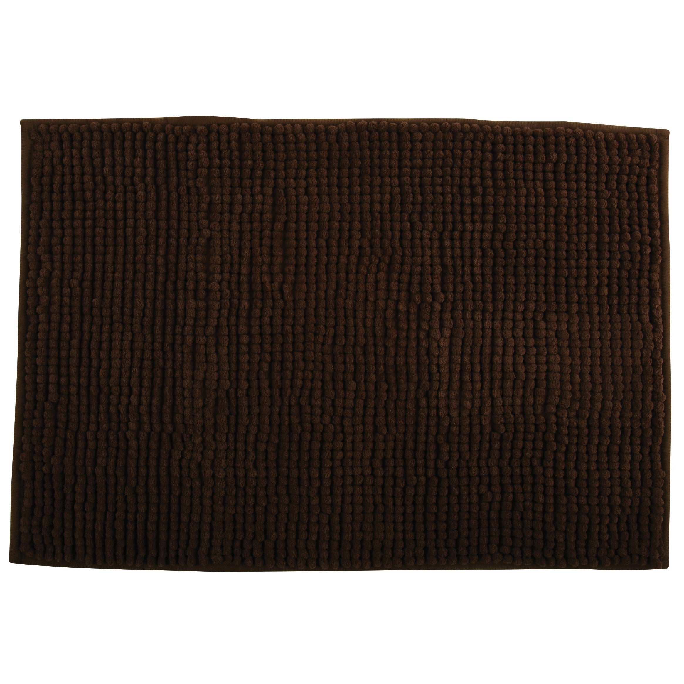 Badkamerkleed/badmat/badkamermat/tapijt met anti-slip voor op de vloer in het toilet of badkamer in de kleur bruin(kastanje) met afmetingen 60 x 90 cm in rechthoekige vorm. De badkamermat is gemaakt van microvezel(microfibre), hierdoor is de mat zacht, kan voldoende water absorberen en voelt dit lekker warm aan je voeten. De mat heeft een eenvoudig basic ribbel patroon. Stevige kwaliteit matten/badkamerkleedjes voor op de vloer van uw badkamer. Wasbaar op 30 graden.