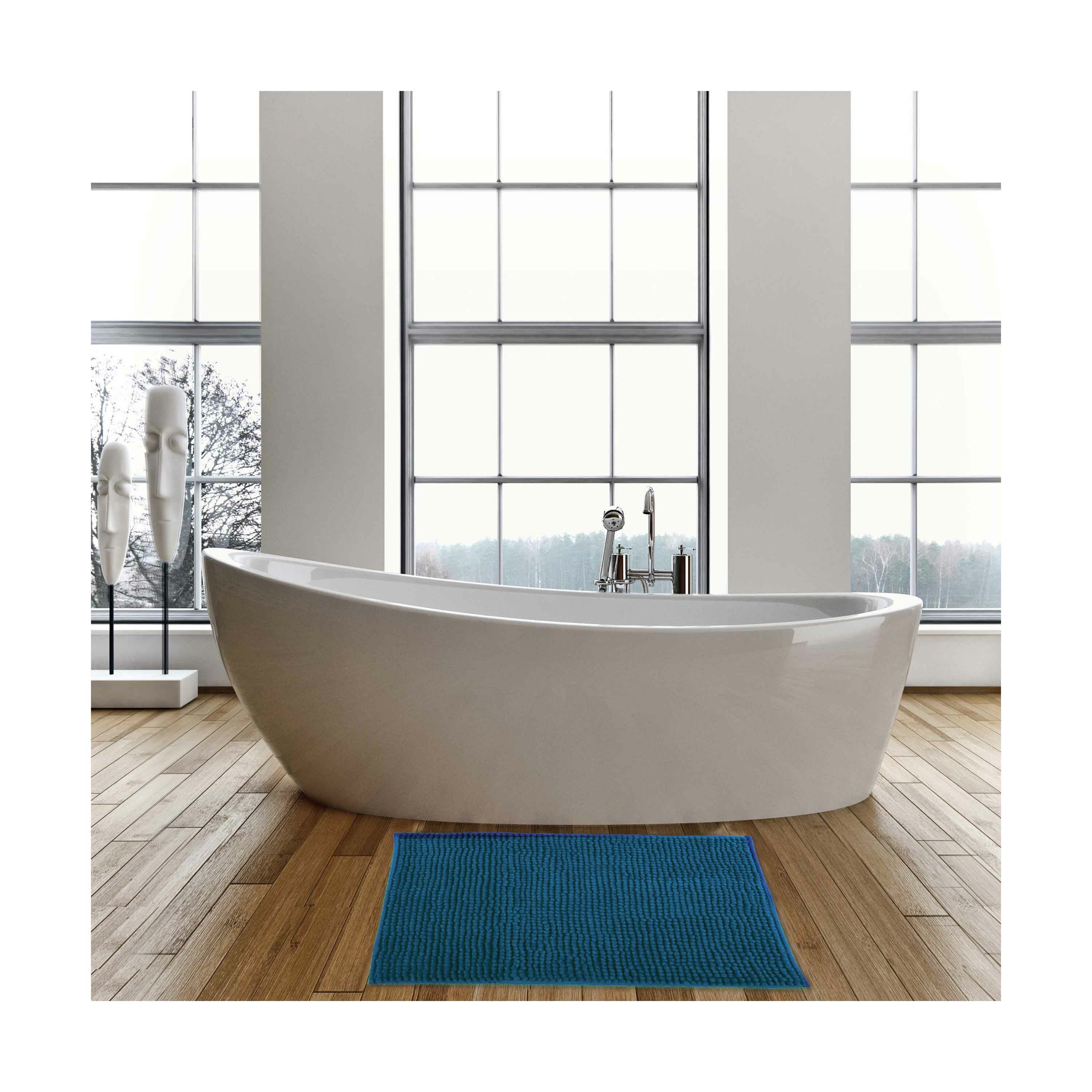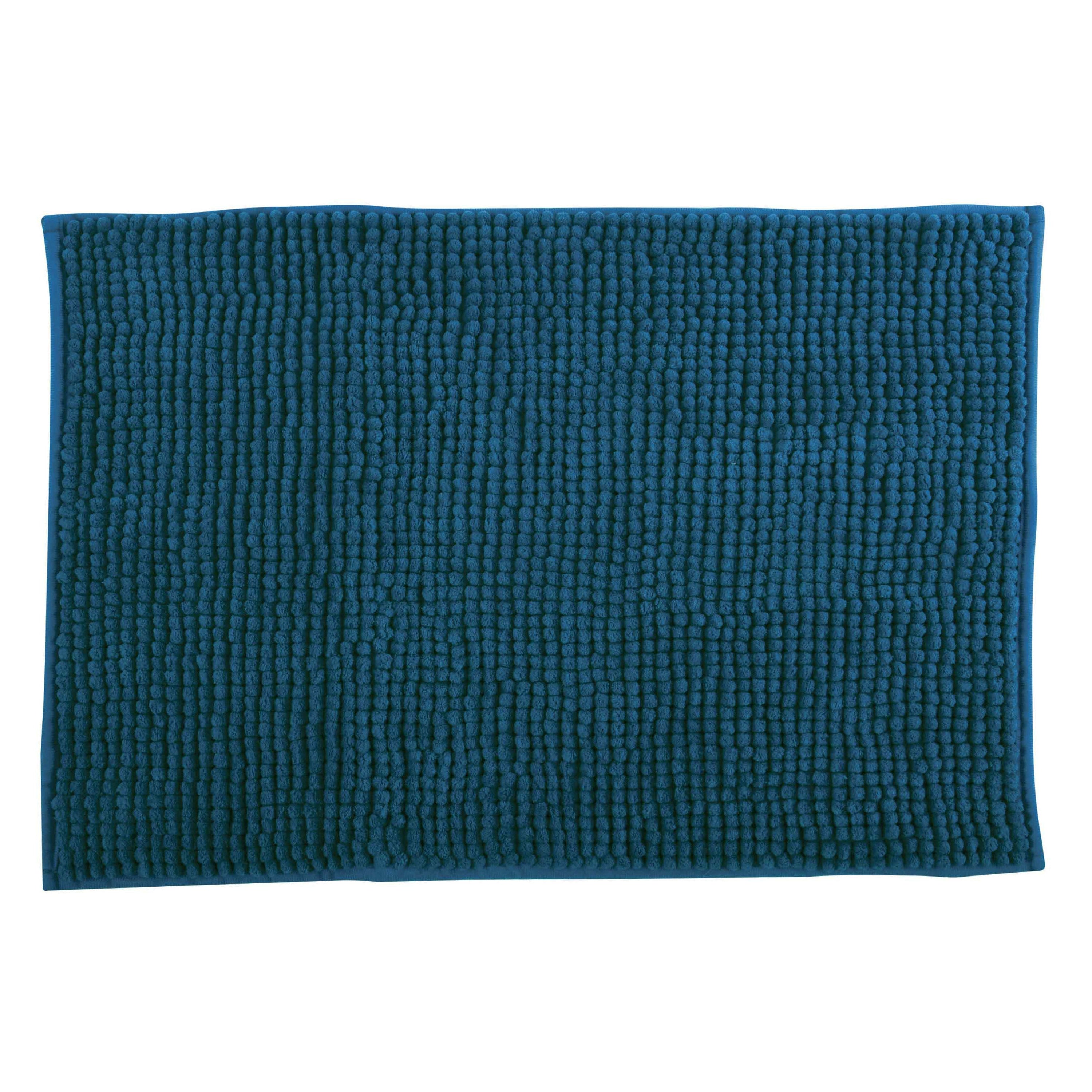 Badkamerkleed/badmat/badkamermat/tapijt met anti-slip voor op de vloer in het toilet of badkamer in de kleur donkerblauw met afmetingen 60 x 90 cm in rechthoekige vorm. De badkamermat is gemaakt van microvezel(microfibre), hierdoor is de mat zacht, kan voldoende water absorberen en voelt dit lekker warm aan je voeten. De mat heeft een eenvoudig basic ribbel patroon. Stevige kwaliteit matten/badkamerkleedjes voor op de vloer van uw badkamer. Wasbaar op 30 graden.