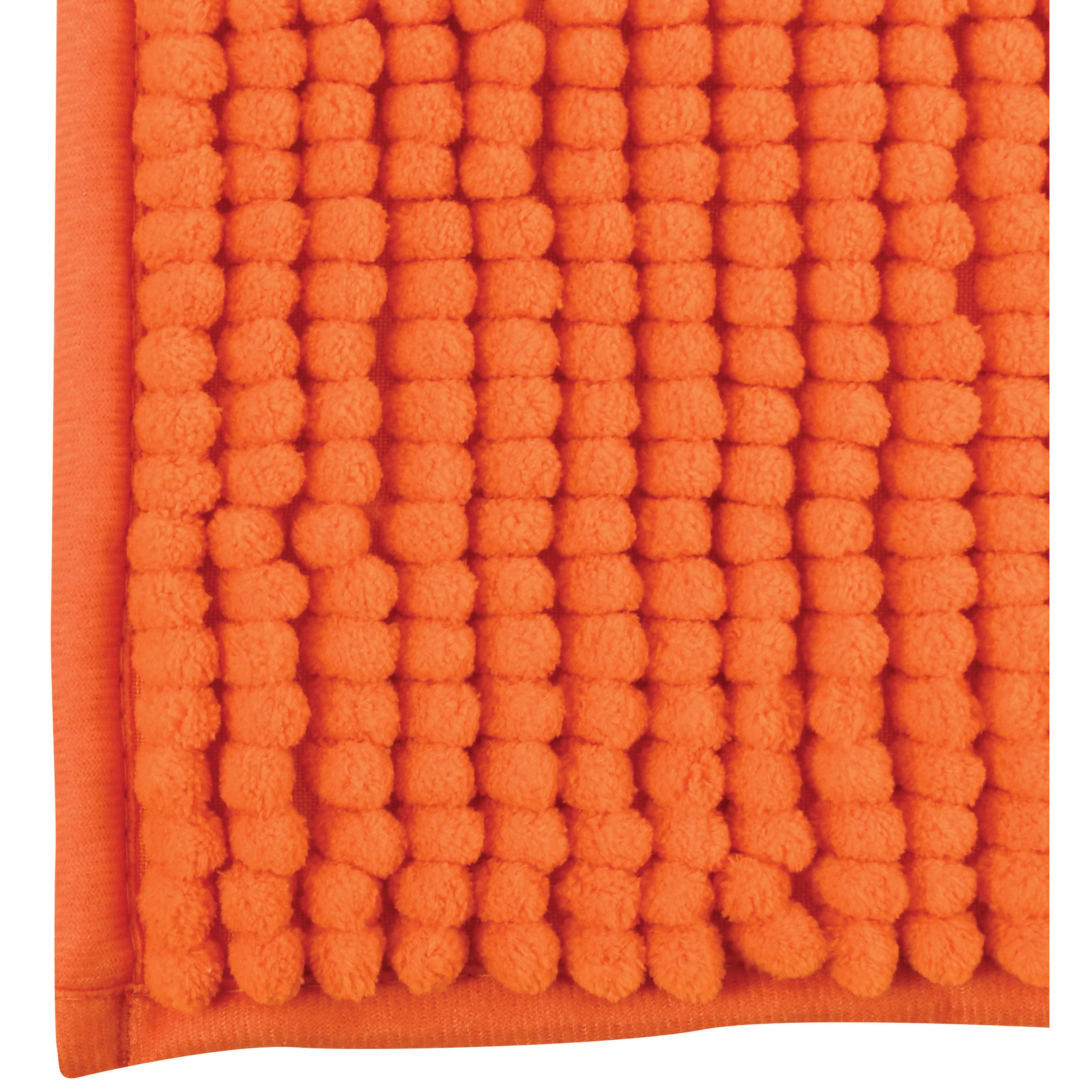 Badkamerkleed/badmat/badkamermat/tapijt met anti-slip voor op de vloer in het toilet of badkamer in de kleur oranje met afmetingen 60 x 90 cm in rechthoekige vorm. De badkamermat is gemaakt van microvezel(microfibre), hierdoor is de mat zacht, kan voldoende water absorberen en voelt dit lekker warm aan je voeten. De mat heeft een eenvoudig basic ribbel patroon. Stevige kwaliteit matten/badkamerkleedjes voor op de vloer van uw badkamer. Wasbaar op 30 graden.