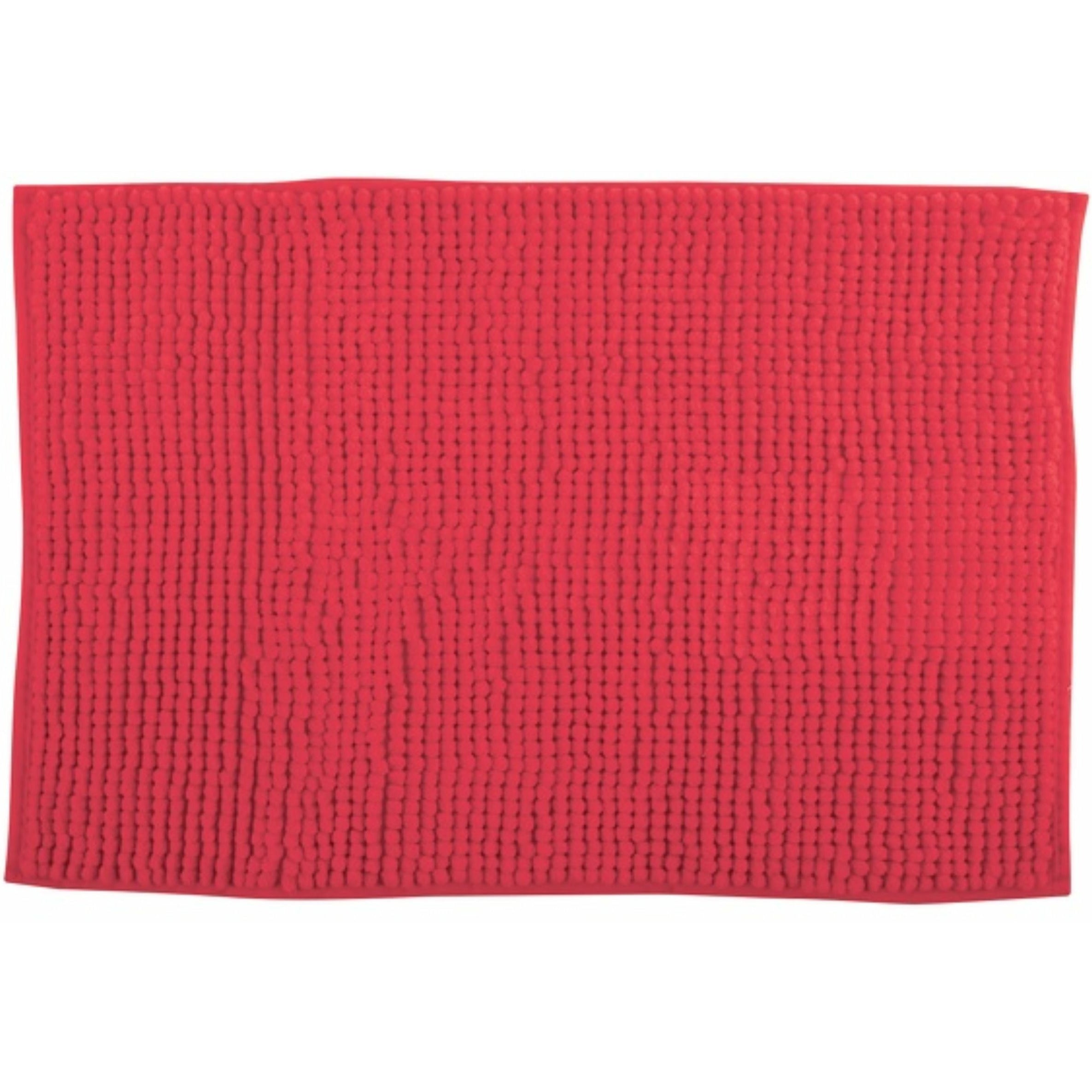 Badkamerkleed/badmat/badkamermat/tapijt met anti-slip voor op de vloer in het toilet of badkamer in de kleur rood met afmetingen 60 x 90 cm in rechthoekige vorm. De badkamermat is gemaakt van microvezel(microfibre), hierdoor is de mat zacht, kan voldoende water absorberen en voelt dit lekker warm aan je voeten. De mat heeft een eenvoudig basic ribbel patroon. Stevige kwaliteit matten/badkamerkleedjes voor op de vloer van uw badkamer. Wasbaar op 30 graden.