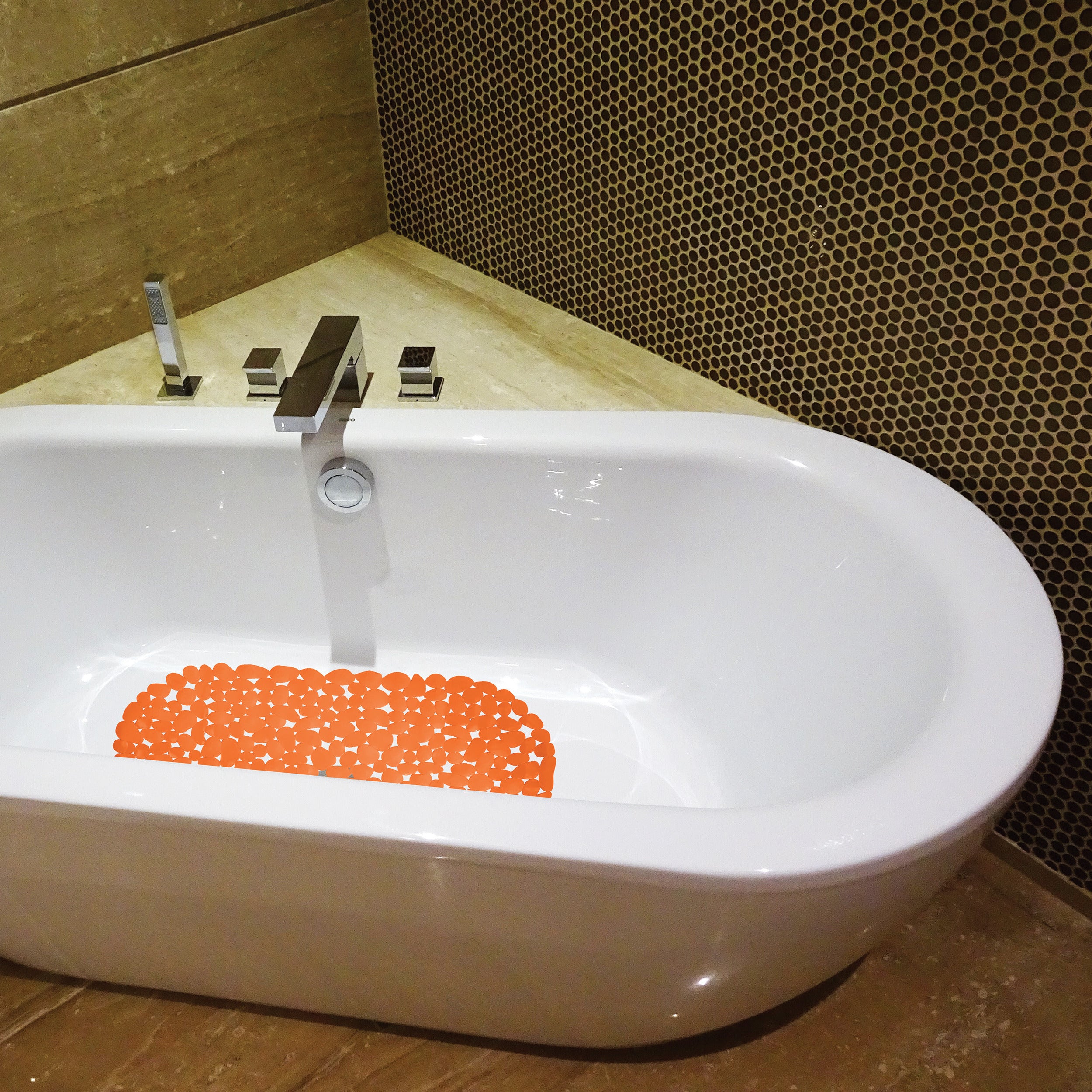 MSV Douche|bad anti-slip mat badkamer - pvc - oranje - 35 x 68 cm