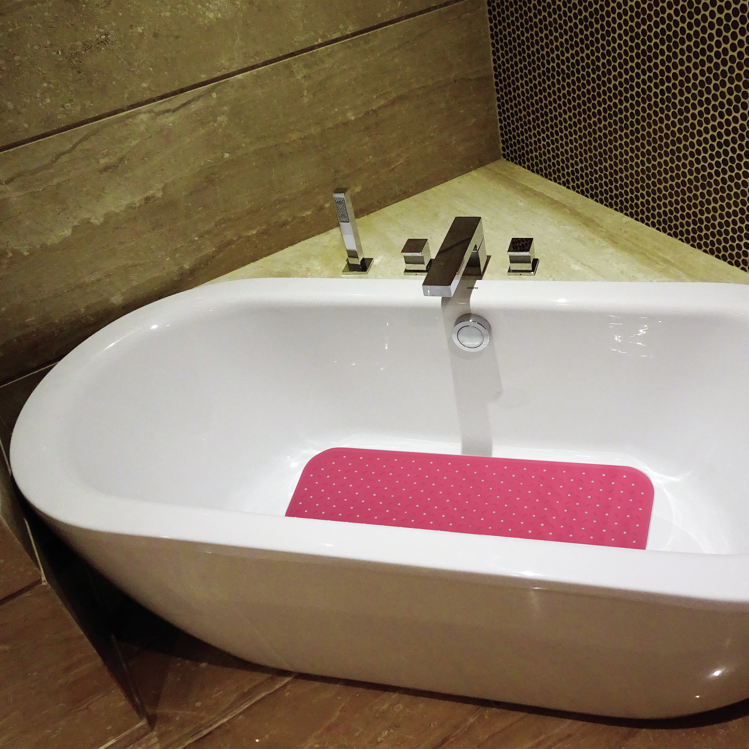 MSV Douche|bad anti-slip mat badkamer - rubber - roze - 36 x 97 cm