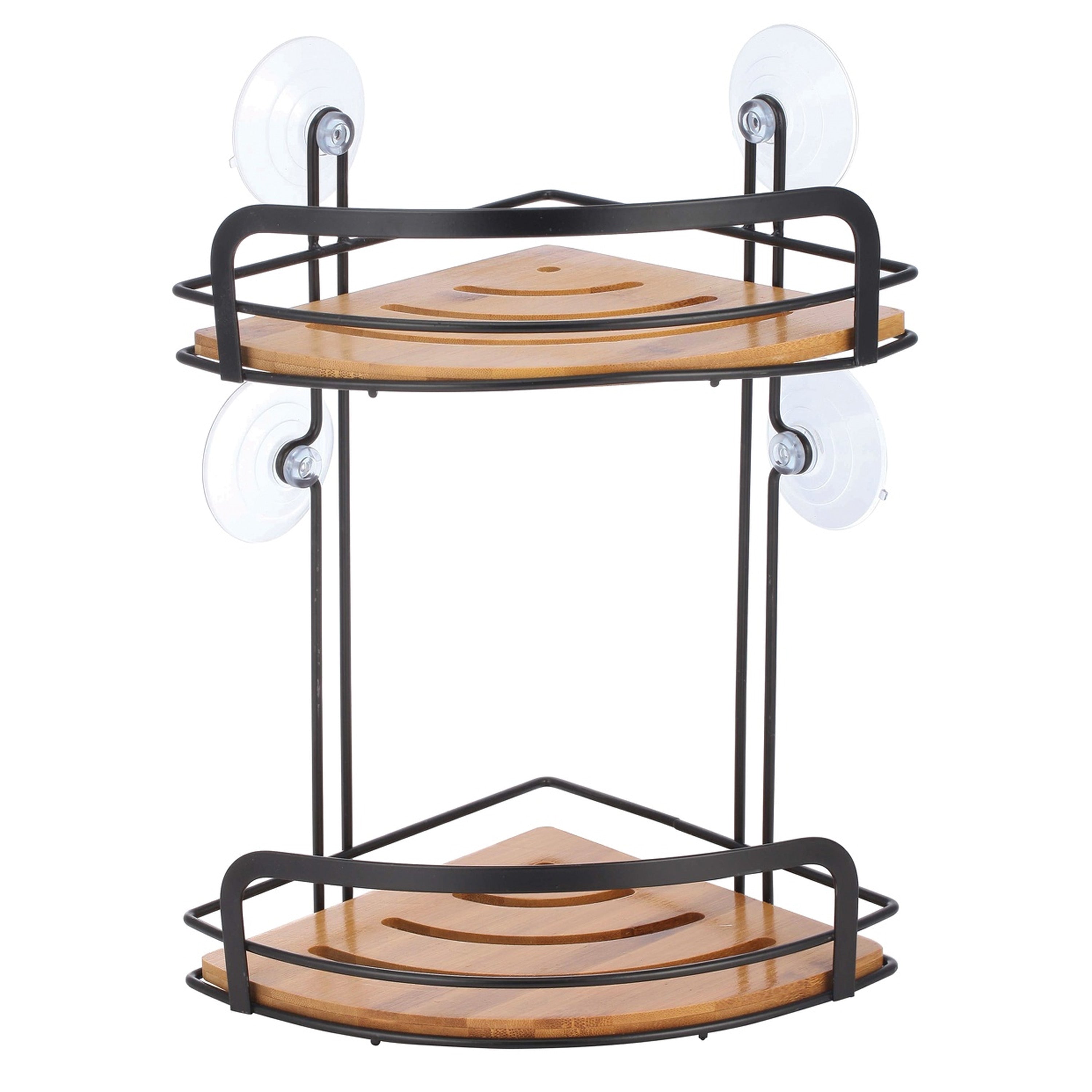 MSV 2-laags doucherekje/badkamerrekje gemaakt van metaal en bamboe in de kleur zwart. Handig rekje voor in de badkamer om o.a. zeep en shampoo flessen in te plaatsen. Elk vak/laag is ca. 21 cm breed/diep. Bevestig het mandje eenvoudig aan de wand door middel van de meegeleverde zuignappen. Materiaal: metaal/bamboe. Formaat: ca. 21 x 21 x 34 cm.