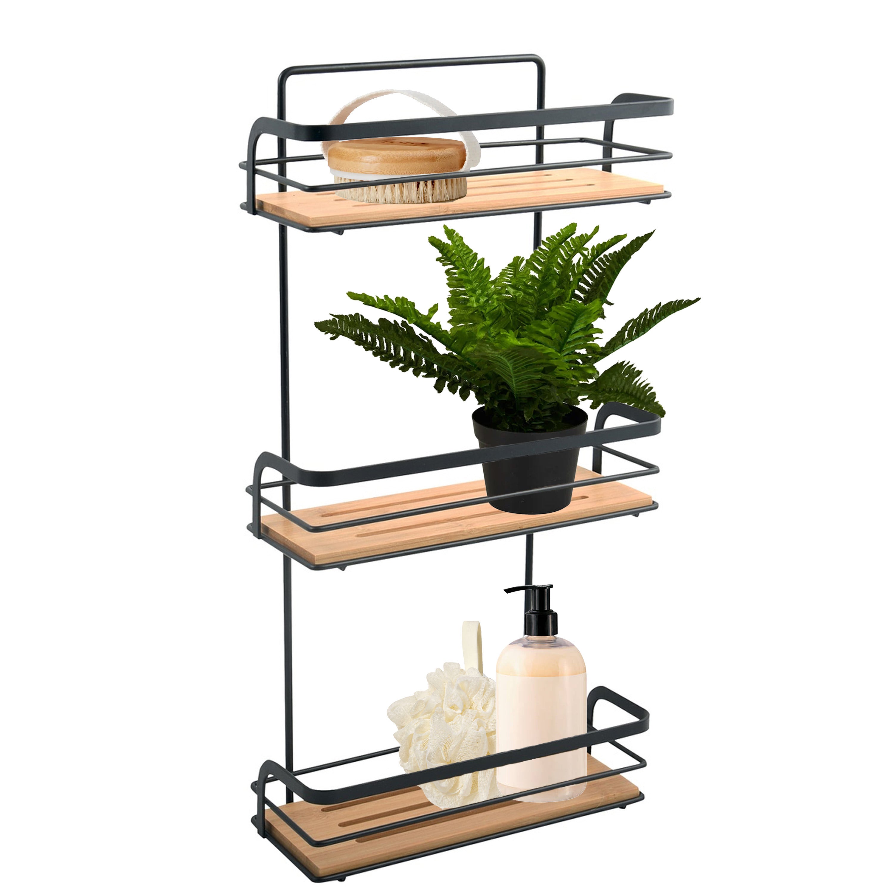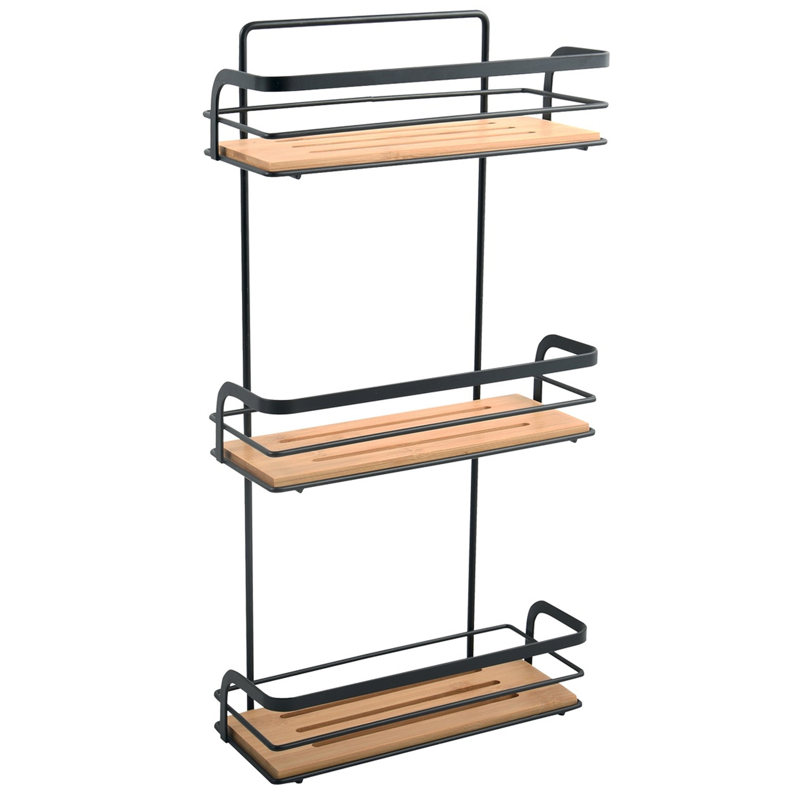 MSV doucherekje - 3-laags - zwart - H49 cm - metaal|bamboe - luxe
