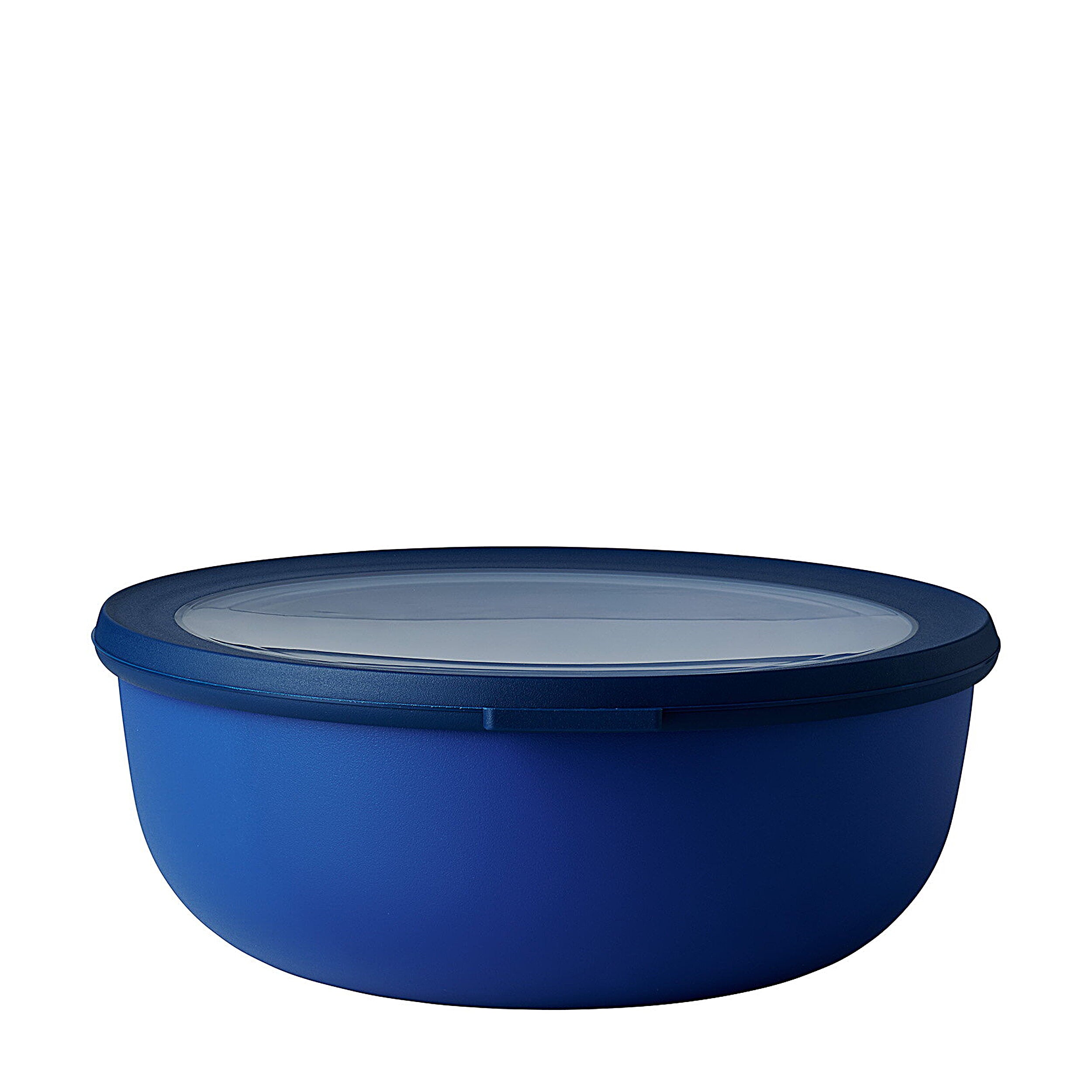 Mepal Cirqula multikom 2250 ml in de kleur Vivid blue. Deze blauwe schaal met een inhoud van 2250 ml is perfect voor het bewaren of meenemen van grote porties soep, vlees of maaltijdsalades. De Cirqula serie van Mepal is speciaal ontwikkeld voor een complete ‘circle of use’. Bewaar eten in de schalen in de koelkast of de vriezer, warm het op in de magnetron (deksel moet worden verwijderd) en serveer je maaltijd in de schaal (direct) op tafel. De Mepal Cirqula multikom is gemaakt van robuust materiaal. Het transparante venster in de deksel zorgt ervoor dat de inhoud goed zichtbaar is. De innovatieve, soepele deksel is luchtdicht en lekvrij. Hierdoor blijft voedsel langer vers en kan het perfect bewaard en meegenomen worden. De Mepal Cirqula multikommen zijn praktisch en gemakkelijk op te bergen omdat je ze op elkaar en in elkaar weg kunt zetten.