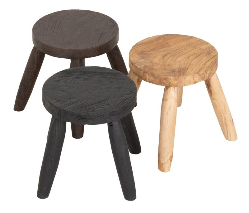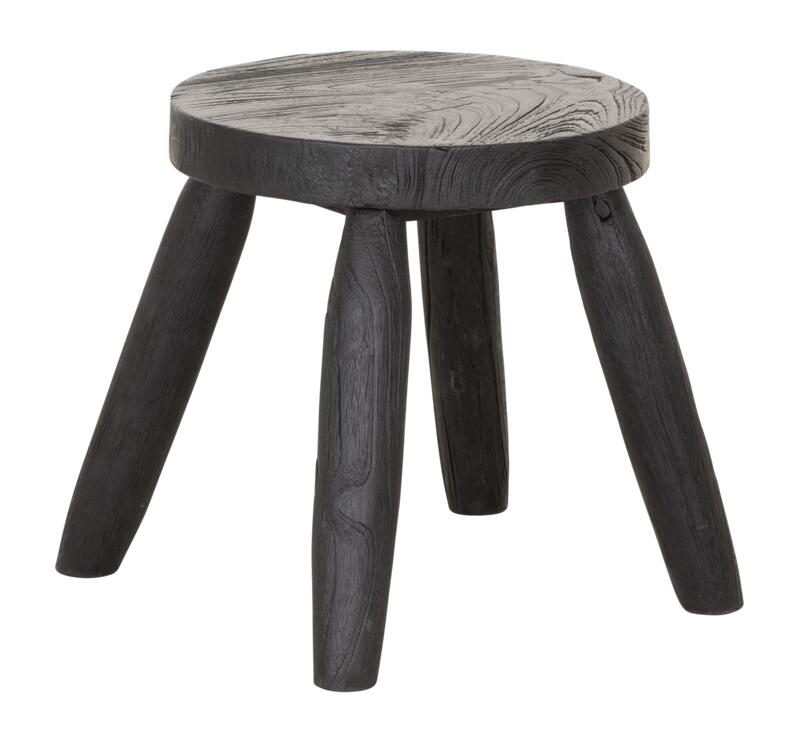 MUST Living Stool Melia Black,31xØ30 |45 cm, black recycled teakwoo...