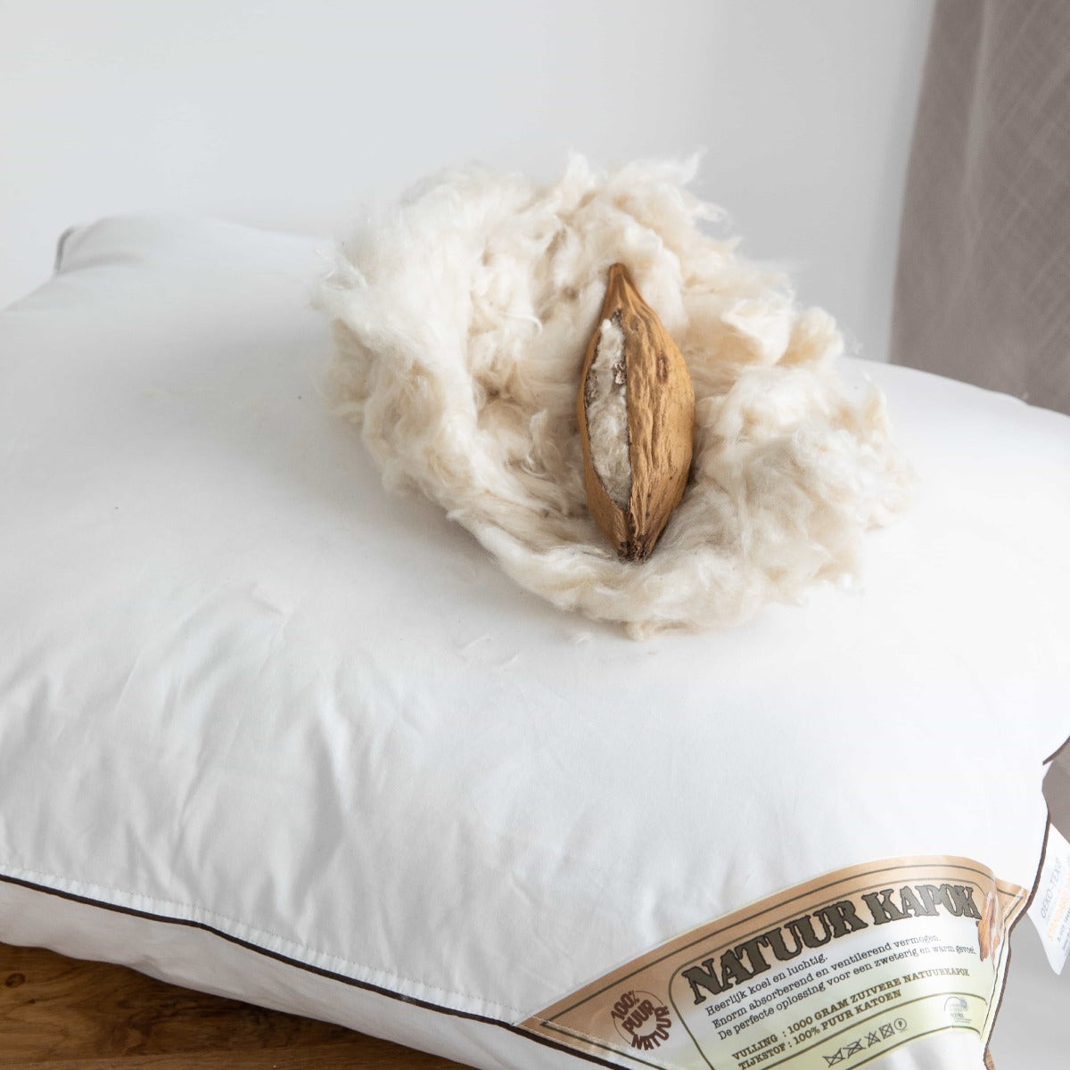 Origineel Javaans kapok is de meest verkoelende, ventilerende en absorberende grondstof die de natuur ons geeft. De natuurlijke vetlaag van de kapok pluizen neemt vocht subliem in zich op en voert dit razendsnel af aan de buitenlucht. Bovendien heeft de natuurlijke vetlaag van de kapok pluizen een bacterie werende werking, waardoor het materiaal hygiënisch blijft.