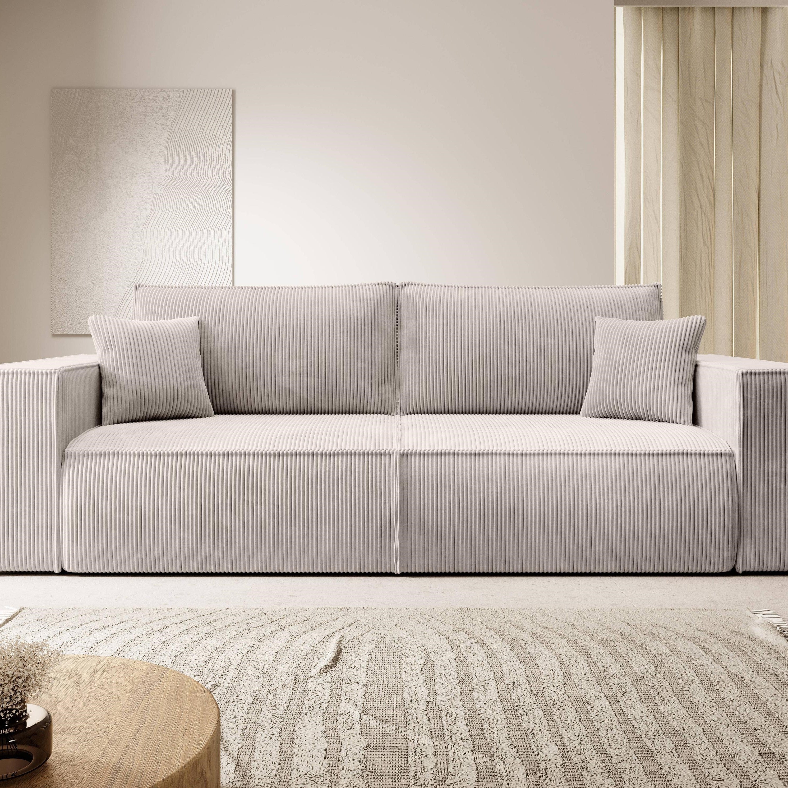 NADUVI Collection Galine 3-zitsbank met Slaapfunctie - Ribstof - Crème