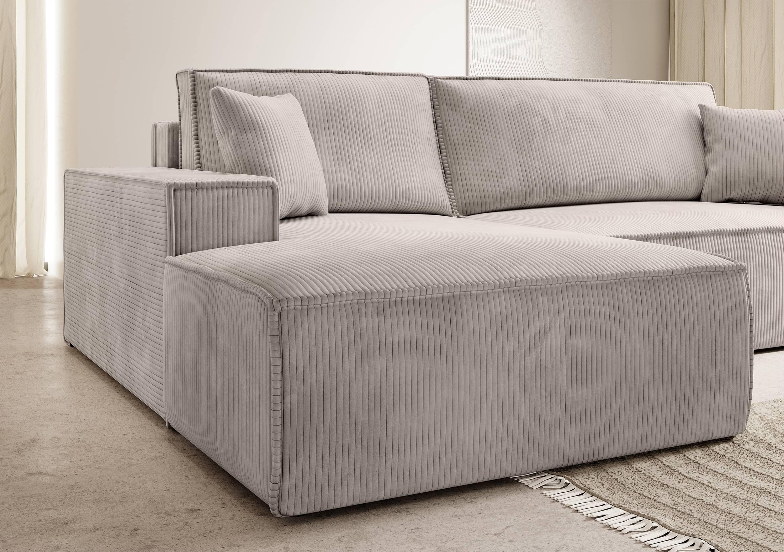 NADUVI Collection Galine Hoekbank met Chaise Longue Links met Slaapfunctie - Ribstof - Crème