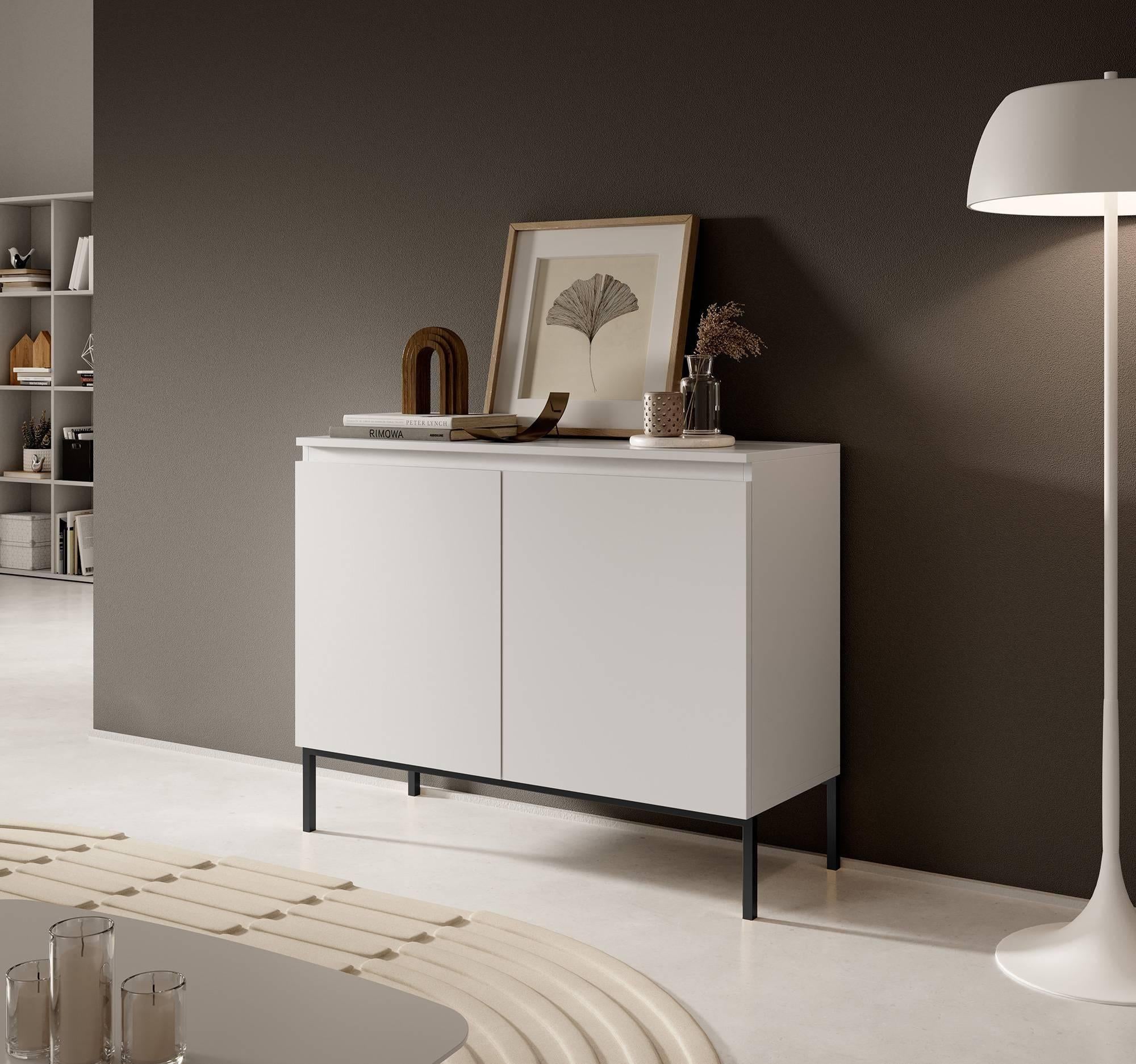 De elegante vormen van het dressoir Kate worden geaccentueerd door een slank stalen onderstel dat een frisse touch geeft aan het geheel. Dit biedt een mooi visueel contrast en zorgt dat de Kate een goede optie is voor allerlei soorten interieurs. De Kate is voorzien van een royale hoeveelheid opbergruimte, waar jij moeiteloos al jouw spullen in kwijt kunt - van kleding tot belangrijke documenten. De hoge poten geven dit meubel een elegante uitstraling en zorgt dat je gemakkelijk onder het meubel schoon kan maken.