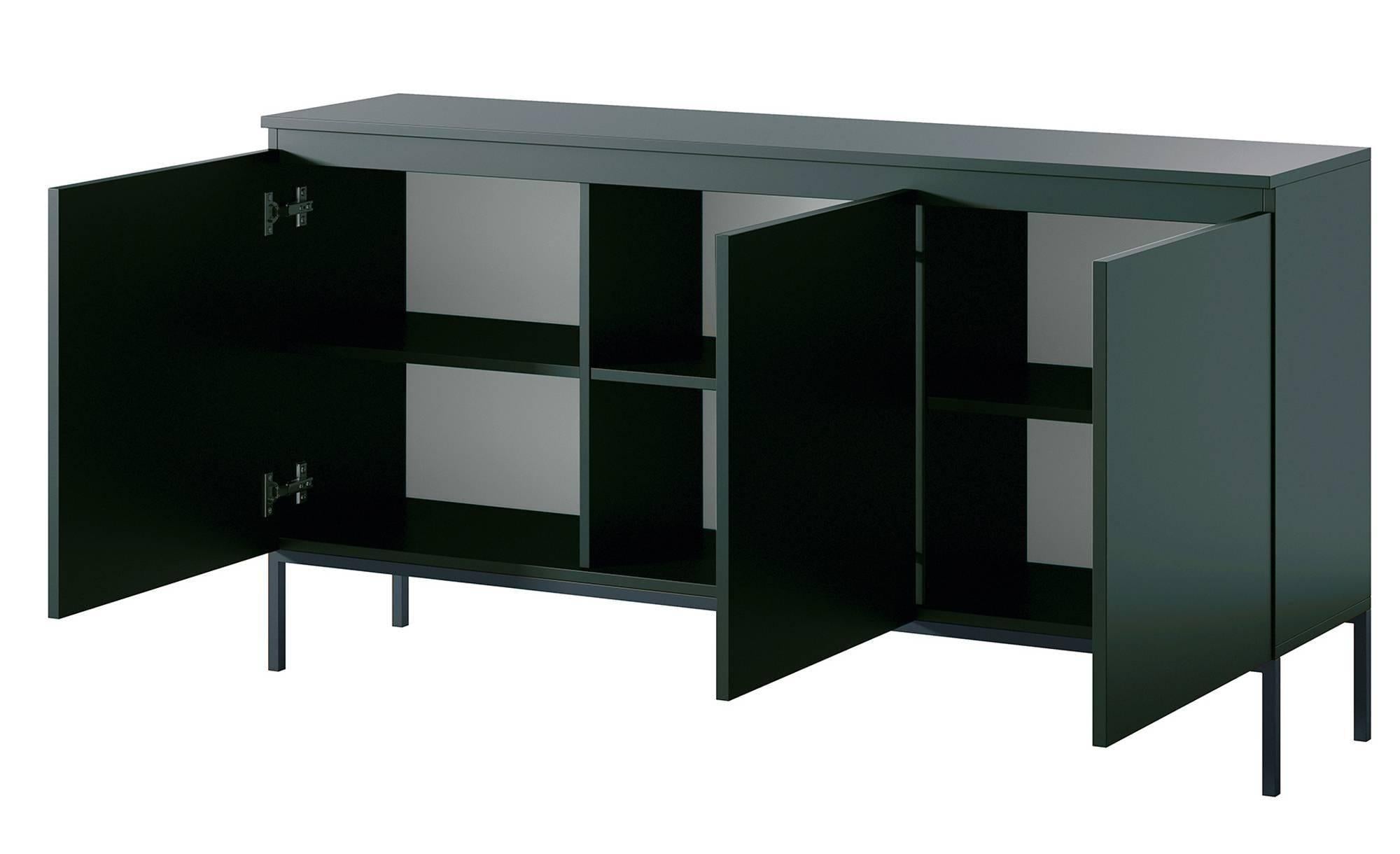 De elegante vormen van het dressoir Kate worden geaccentueerd door een slank stalen onderstel dat een frisse touch geeft aan het geheel. Dit biedt een mooi visueel contrast en zorgt dat de Kate een goede optie is voor allerlei soorten interieurs. De Kate is voorzien van een royale hoeveelheid opbergruimte, waar jij moeiteloos al jouw spullen in kwijt kunt - van kleding tot belangrijke documenten. De hoge poten geven dit meubel een elegante uitstraling en zorgt dat je gemakkelijk onder het meubel schoon kan maken.