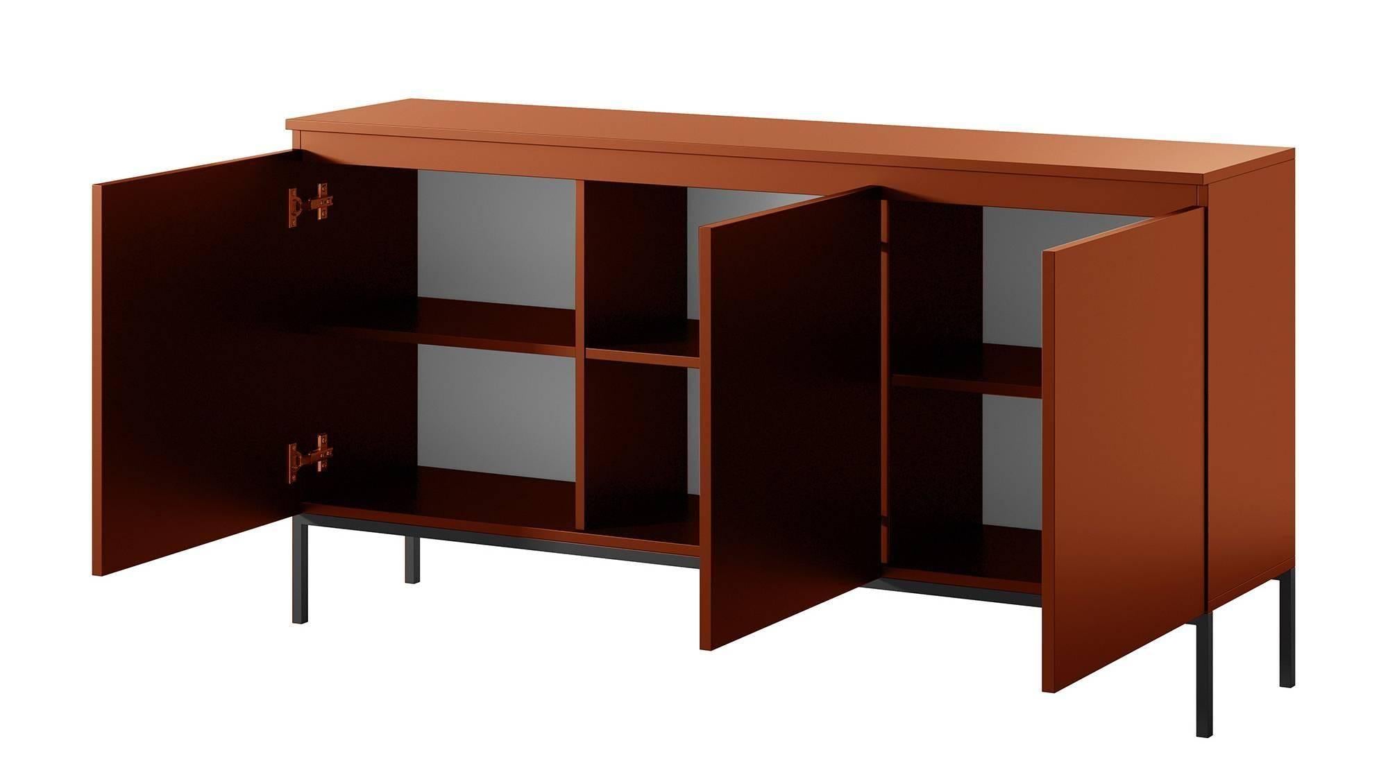 De elegante vormen van het dressoir Kate worden geaccentueerd door een slank stalen onderstel dat een frisse touch geeft aan het geheel. Dit biedt een mooi visueel contrast en zorgt dat de Kate een goede optie is voor allerlei soorten interieurs. De Kate is voorzien van een royale hoeveelheid opbergruimte, waar jij moeiteloos al jouw spullen in kwijt kunt - van kleding tot belangrijke documenten. De hoge poten geven dit meubel een elegante uitstraling en zorgt dat je gemakkelijk onder het meubel schoon kan maken.