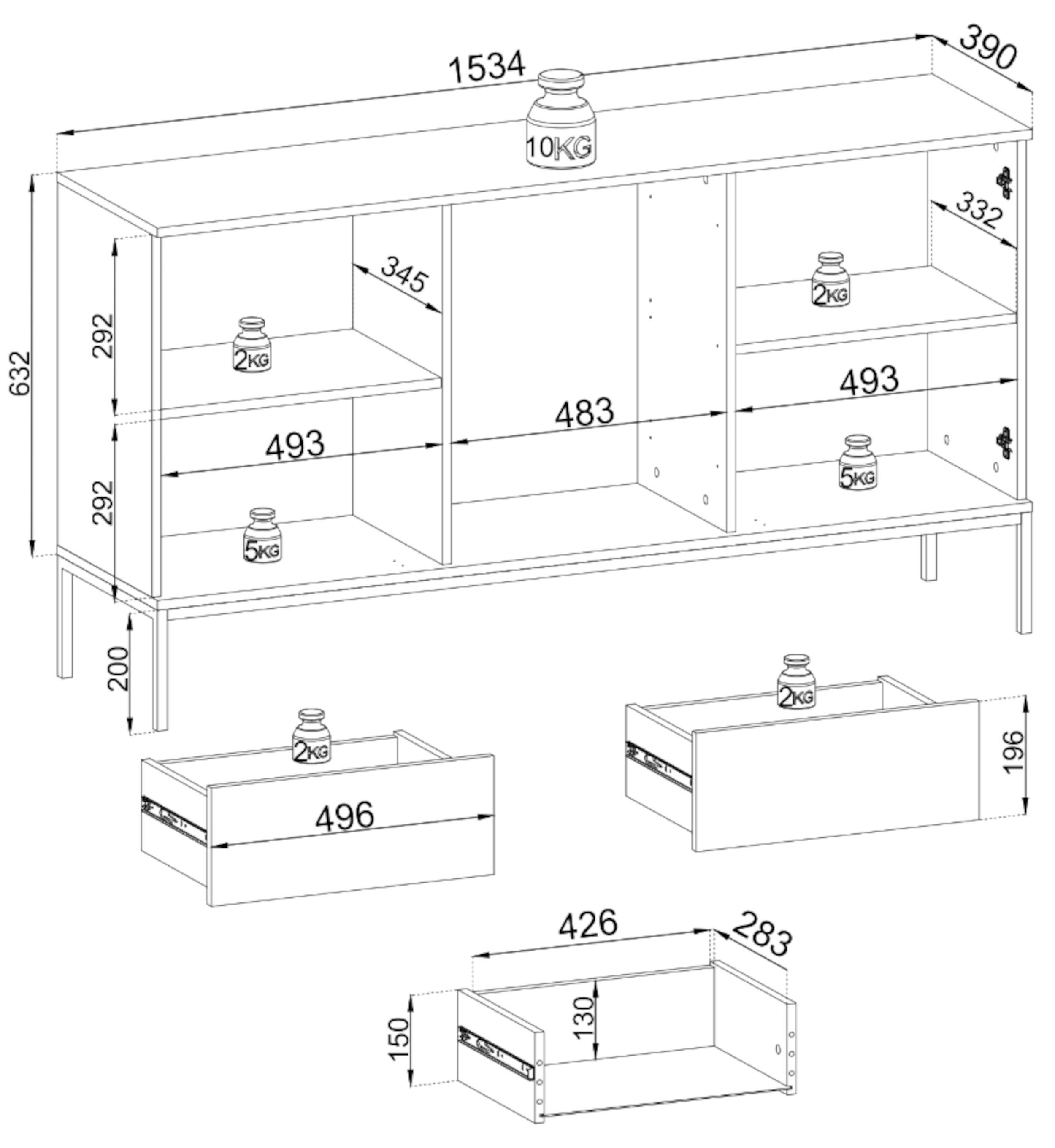 NADUVI Collection Ladekast Tiana 2-deurs met verlichting