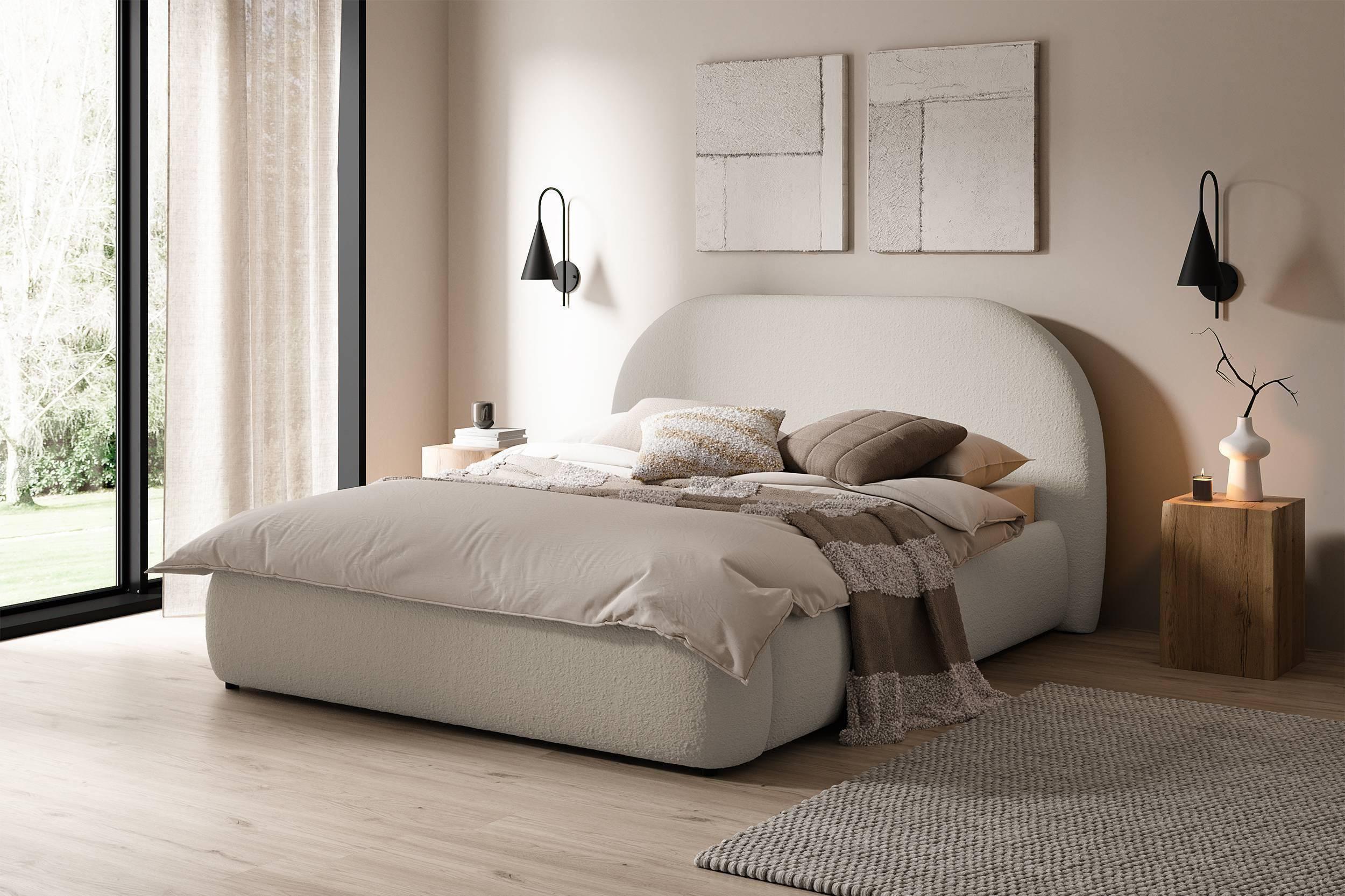 NADUVI Collection Philipa Bedframe - 160 x 200 cm - Bouclé - Lichtbeige