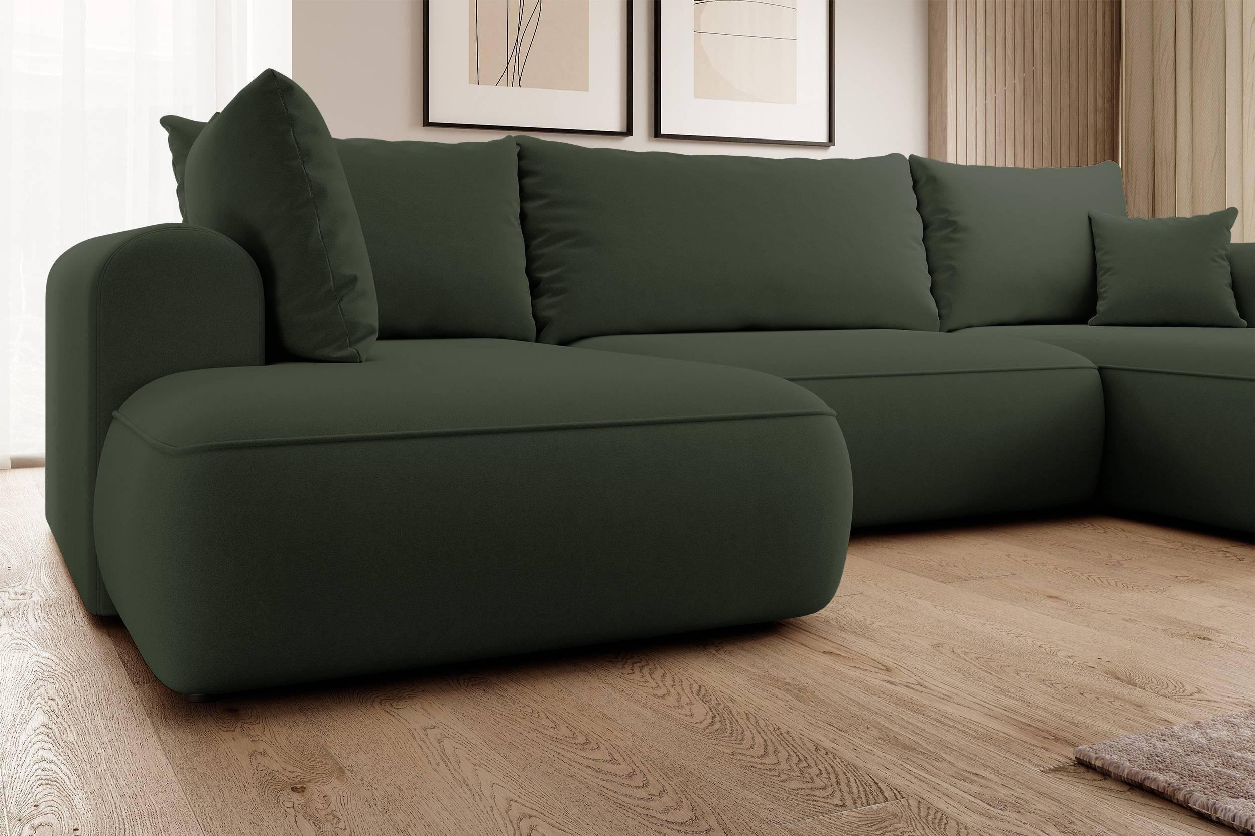 NADUVI Collection Philipa U-bank Links met Slaapfunctie - Velvet - Donkergroen