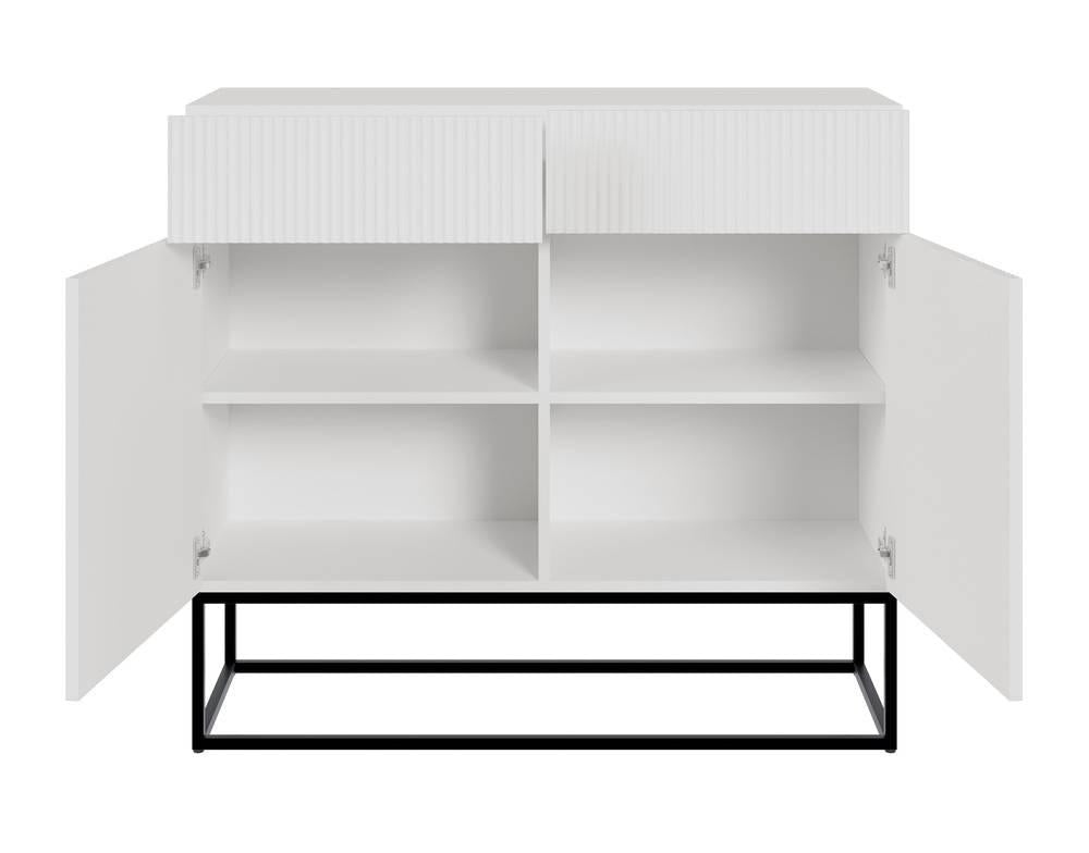 Opbergkast Vesper heeft een opvallend uiterlijk vanwege de verticale ribbelstructuur aan de voorzijde. Deze kaptafel is daarnaast ook nog praktisch vanwege de handige opbergruimte.