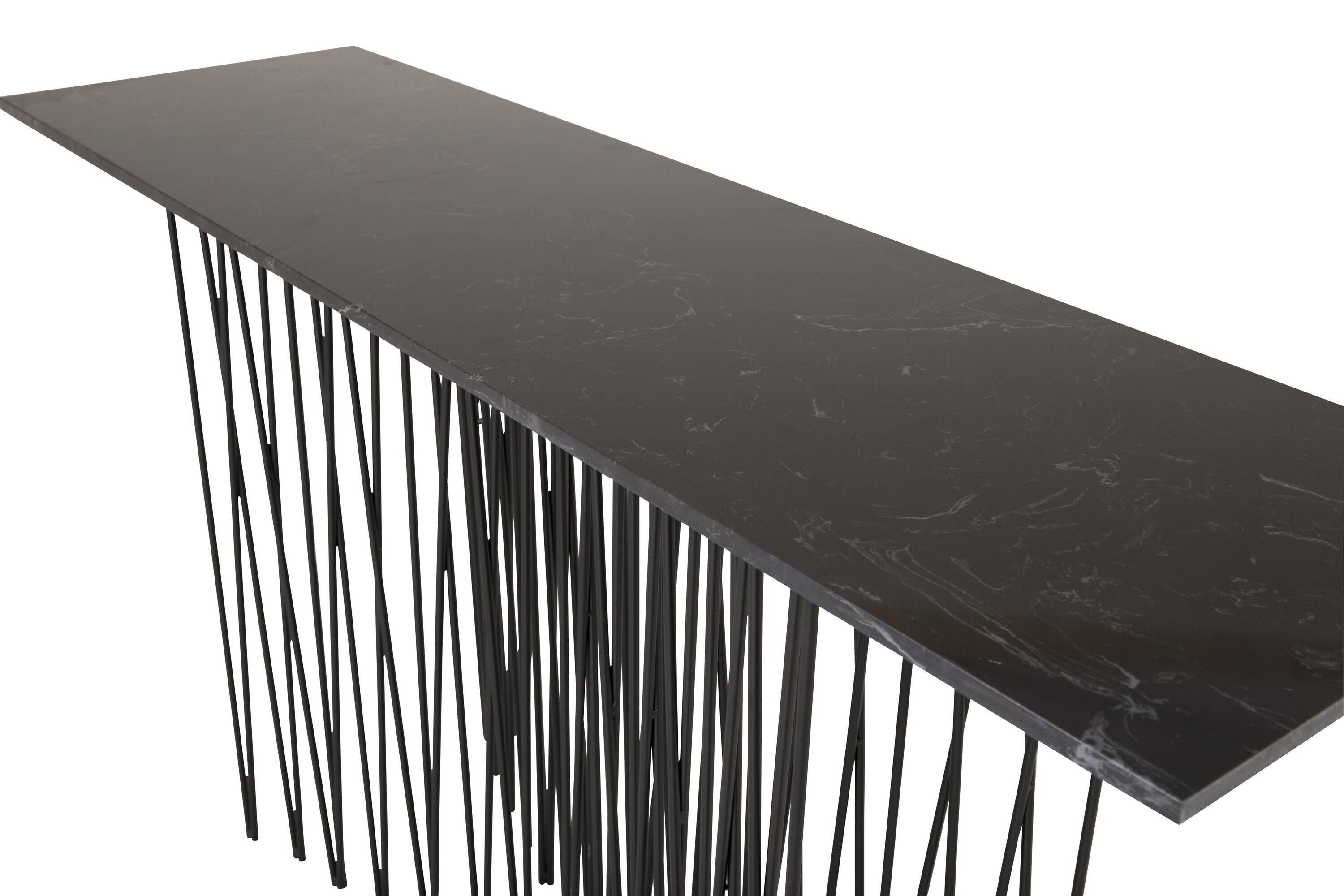 - 1 x Stone sidetable 37x130 cm glas zwart marmor decor.