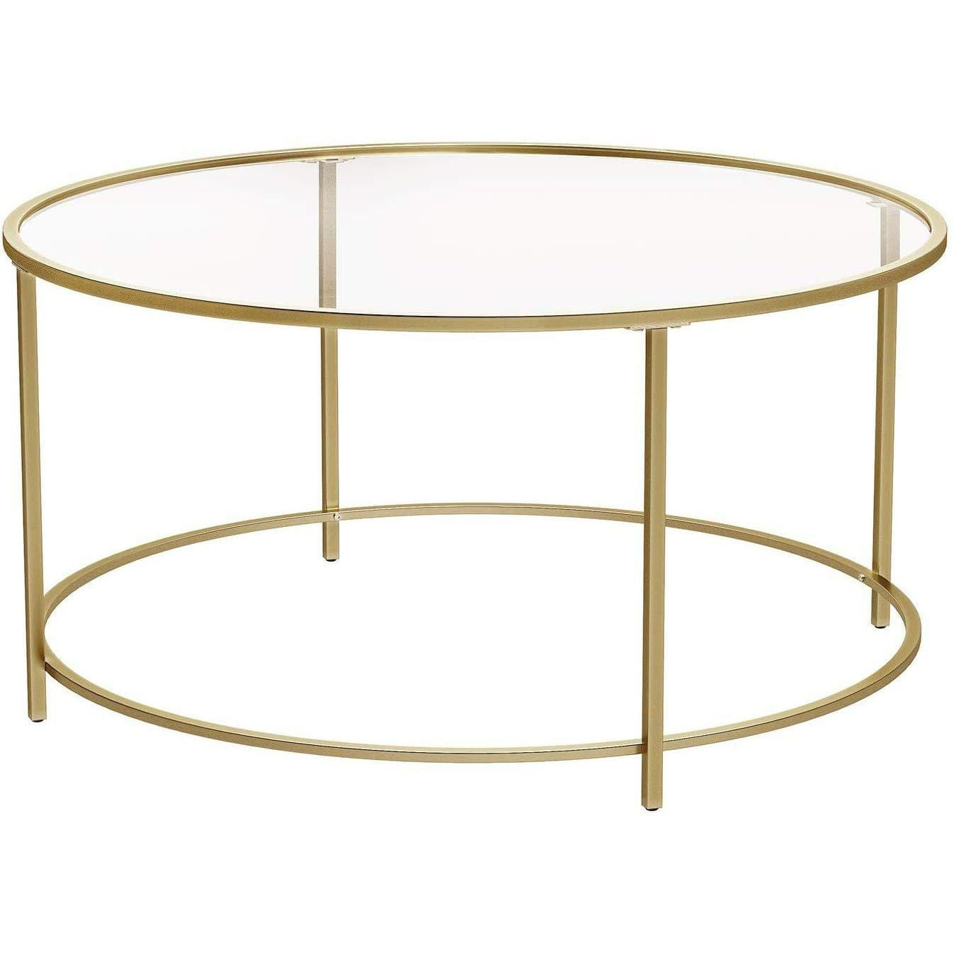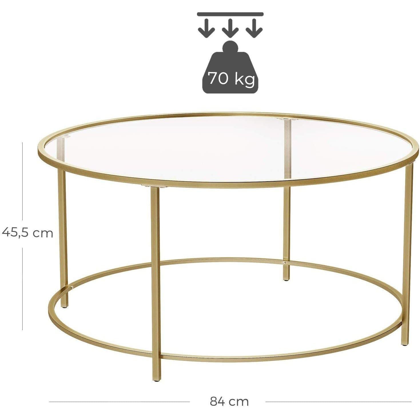 Robuuste gouden tafel: 2 ringen en 4 poten van ijzer vormen de stabiele basis van deze nobele salontafel - een duurzaam maar toch modern accent voor uw huis!