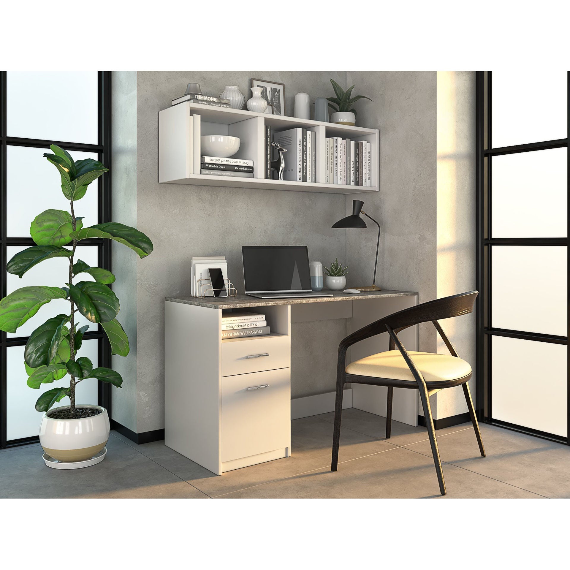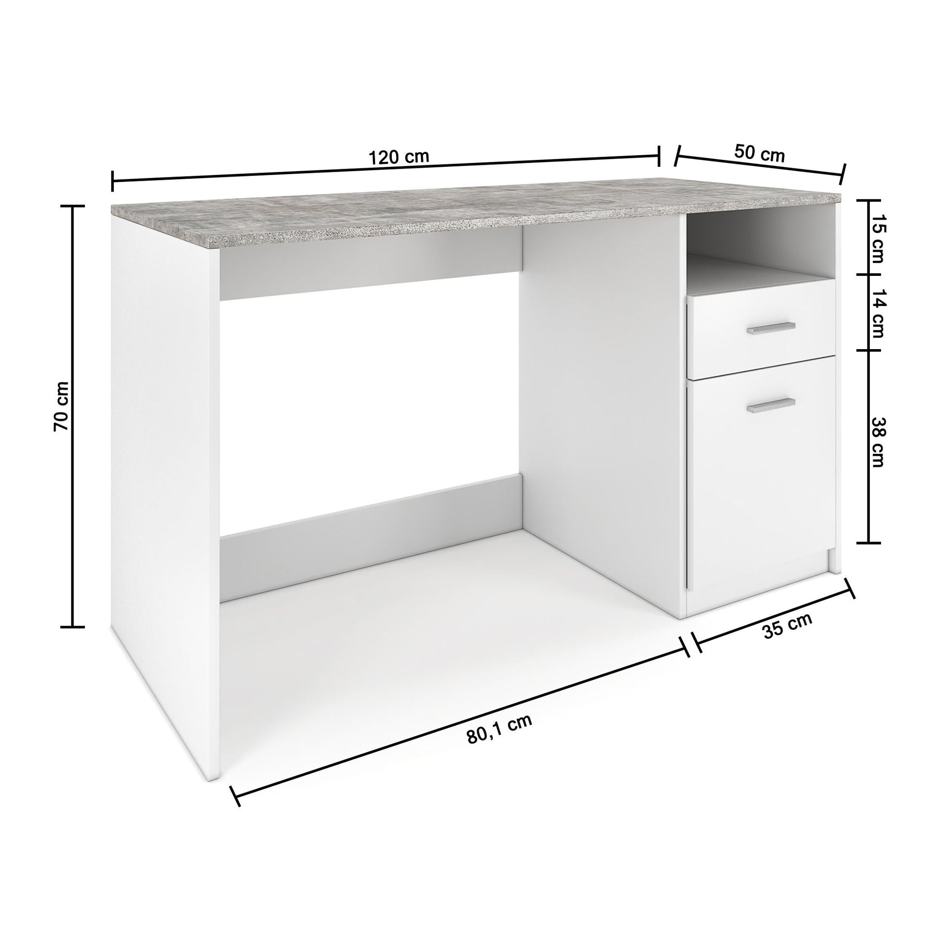 - Kleur: Wit-Beton/Zwart - Materiaal: bewerkt hout - Afmetingen: 120 x 50 x 75 cm - Gewicht: 21 kg - Max. Statisch laadvermogen: 50 kg