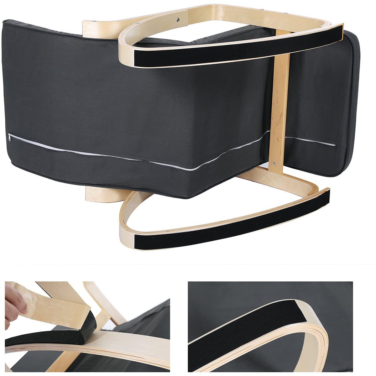 In het pakket zit een uitgebreide montagehandleiding, de fauteuil is gemakkelijk en snel te monteren en demonteren. Het mooie uiterlijk en het eenvoudige kleurenpatroon maken de schommelstoel ideaal voor modern ingerichte huizen, maar ook voor elke lees/tv-kamer