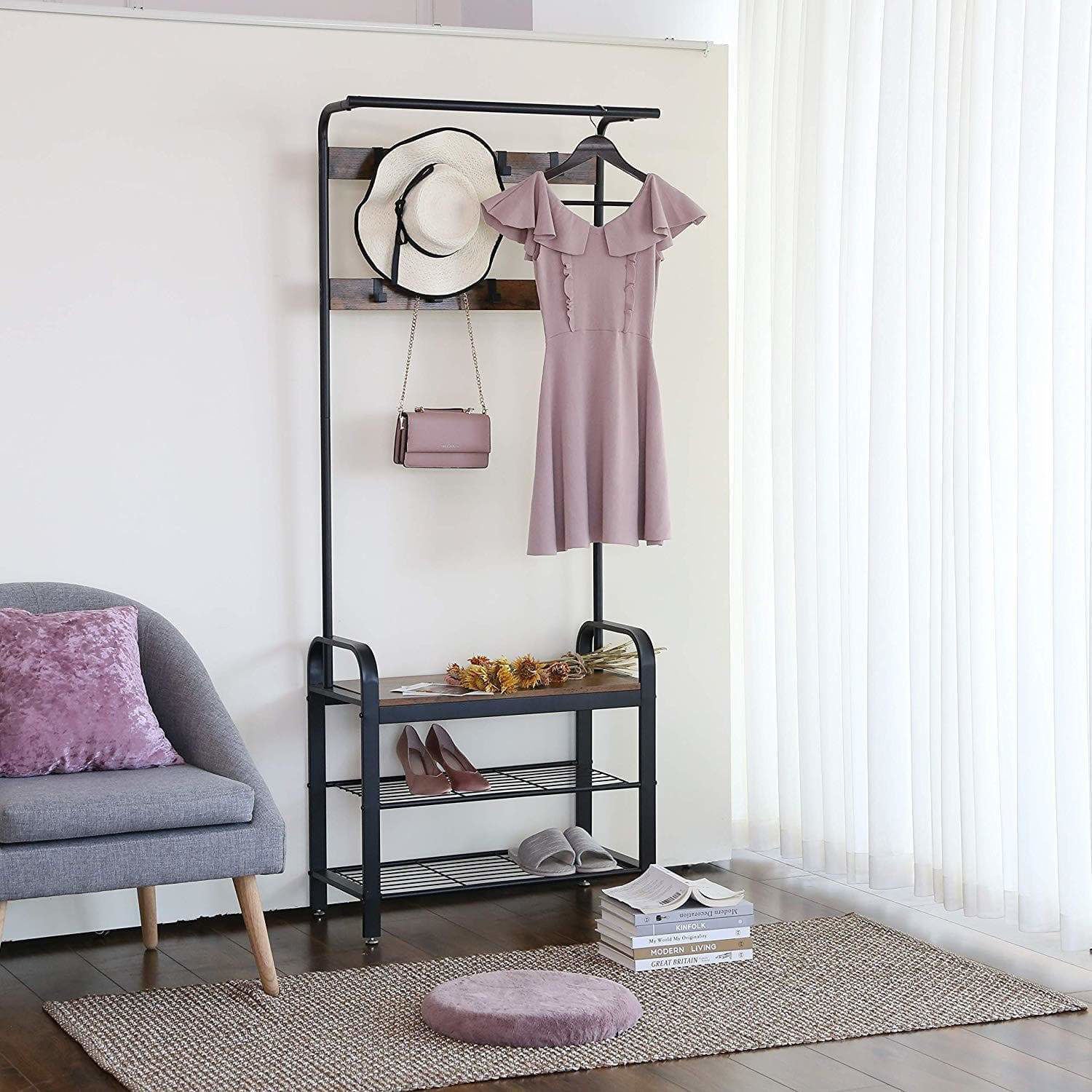 Vintage kapstok met metalen elementen: Dit is niet alleen voor liefhebbers van de hippe vintage stijl, maar zelfs fans van trendy industrieel design kunnen hun gang verbeteren met deze kapstok. Het metalen schoenenrek maakt het een multifunctioneel product.