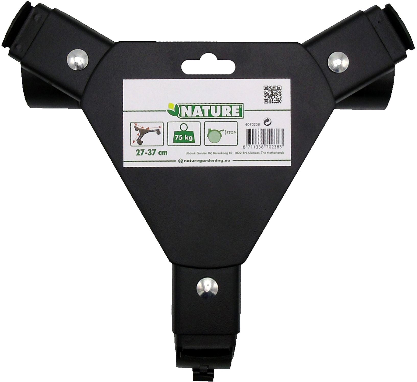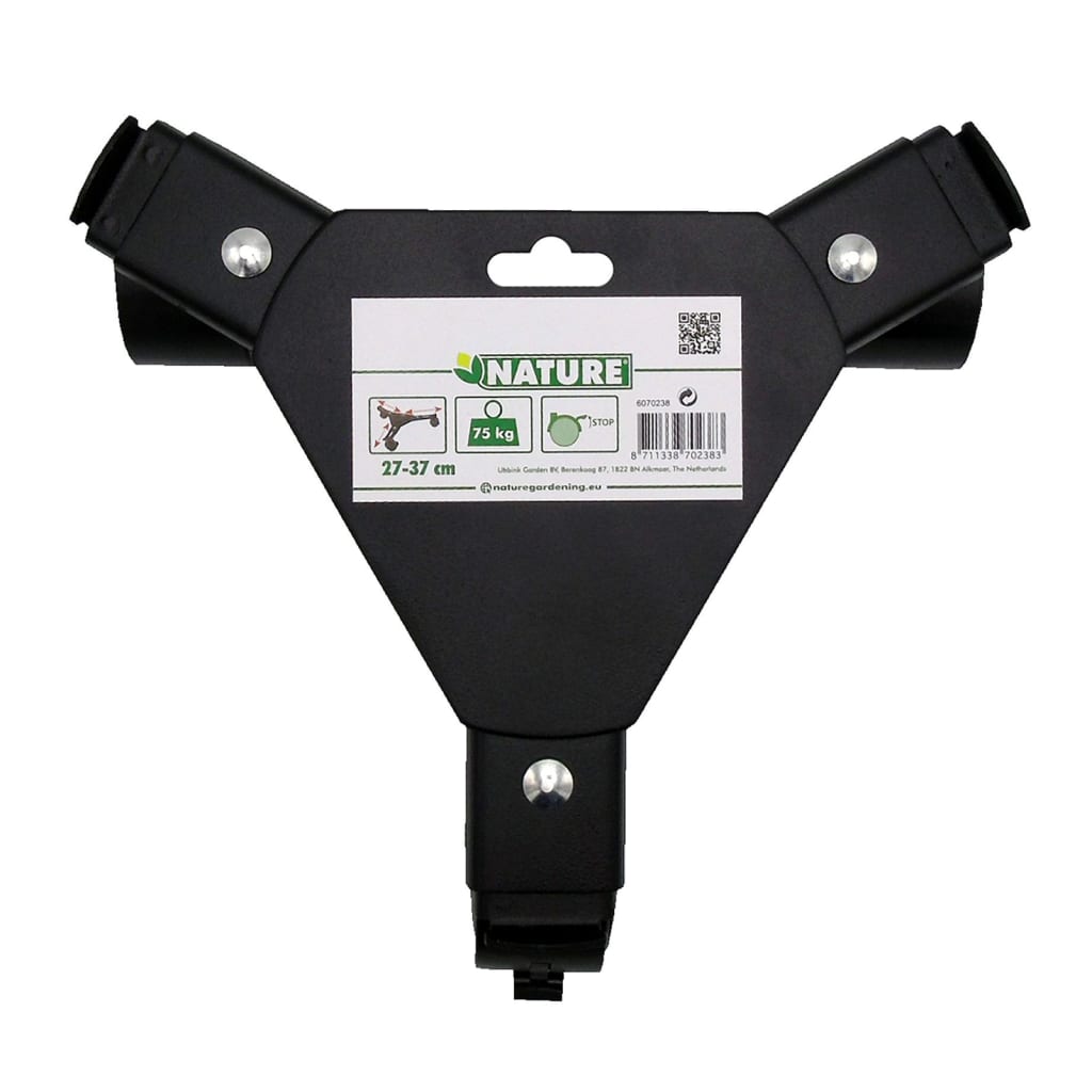 De verstelbare, 3-armige Nature plantentrolley is gemaakt van metaal met epoxycoating in een zwarte kleur.