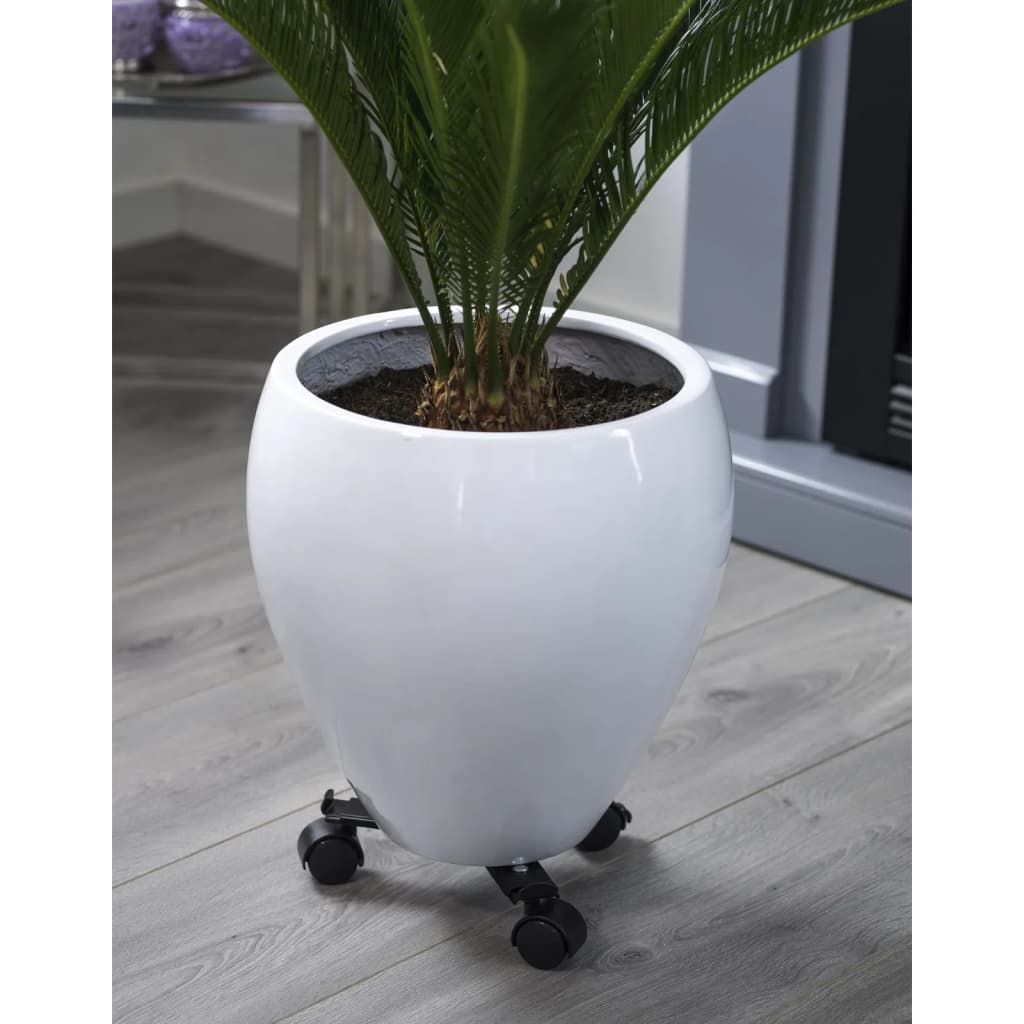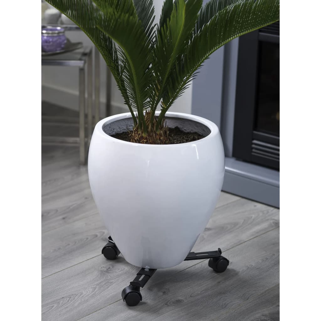 De verstelbare, 3-armige Nature plantentrolley is gemaakt van metaal met epoxycoating in een zwarte kleur. Ondersteunende armen: hij heeft 3 ondersteunende armen van aanpasbare lengte om hem aan elke gewenste pot aan te passen. Het uiteinde van elke arm is verhoogd om de pot op zijn plaats te houden.Duurzaam materiaal: de wielen zijn gemaakt van polypropeen, dat duurzaam in gebruik is. Ze hebben een diameter van 40 mm en zijn elk voorzien van een rem.Brede toepassing: je kunt dit product gebruiken als universele plantenstandaard, of je kunt het gebruiken om zware plantenbakken naar elke gewenste plek te verplaatsen.
