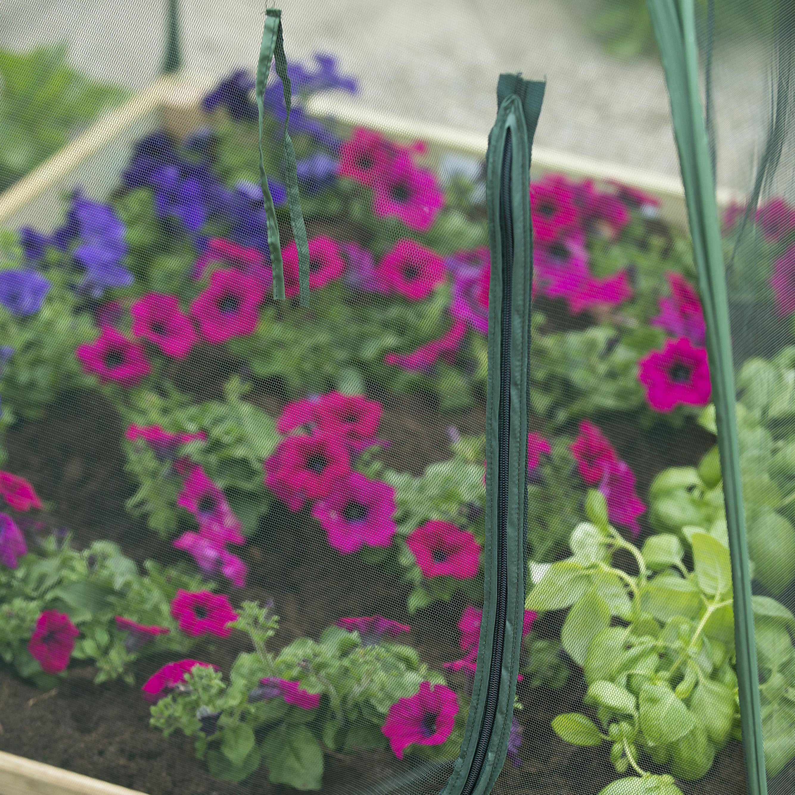 Bescherm je vierkante meter Het opwerp kasje is gemaakt van stevig polyester en is geschikt voor één vierkante meter. Dankzij de handige opening met ritssluiting kun je nog steeds heel makkelijk je plantjes verzorgen.