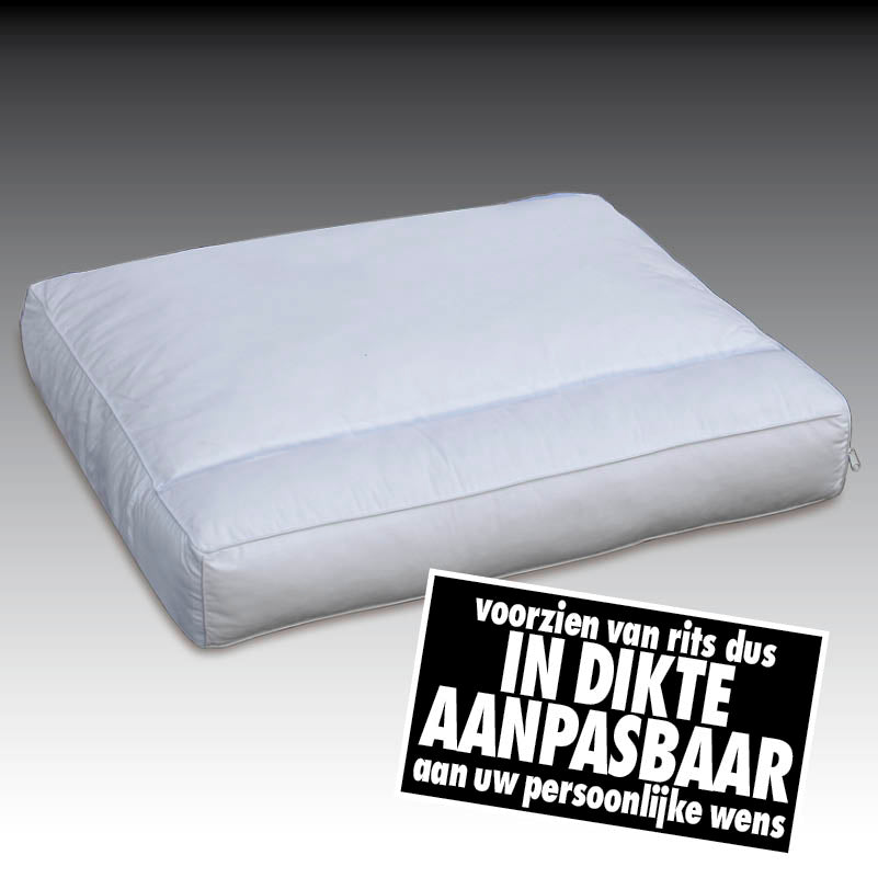 Hoofdpijn? Nekklachten? Kijkt U eerst eens of u wel goed slaapt. Want een goede nachtrust is hoofdzaak. Een natuurlijk gesteunde wervelkolom is het geheim van ’n goede slaaphouding. Dat zal elke fysiotherapeut bevestigen. Een goed bed kan wél uw hele rug anatomisch juist ondersteunen, maar niet uw hoofd. En juist daar ontstaan veel klachten, ten gevolge van een verkeerde houding. Gelukkig is er nu een kussen dat wél doet wat het moet doen! Het unieke NATUUR KAPOK Support-kussen is na jarenlange research zo ontworpen, dat door de ingebouwde neksteun-rol, onze hals perfect en correct ondersteund wordt. De vulling is van 100% natuurzuiver kapok uit Java; mondiaal geroemd om haar sublieme kwaliteit. NatuurKapok is veerkrachtig en vormend. Maar Kapok blinkt vooral uit in haar verkoelende en absorberende eigenschappen. Kapok voelt fris aan, en voert transpiratievocht razendsnel af. Dus beslist ideaal voor mensen met ’n warm hoofd. De ingebouwde neksteun rol is gescheiden van de hoofd-opvang kamer door een dialyse-membraam. Deze uitgekiende vormgeving garandeert een zeer genuanceerde correctie en opvang van hoofd, hals en schouders. De sterke tijkstof is uiteraard van 100% puur natuurlijk katoen, voorzien van rits, zodat u elk compartiment eenvoudig geheel aan uw persoonlijke slaapwens kunt aanpassen. Zó bepaalt u uw perfecte dikte en drukkracht tot in perfectie. Bovendien is dit speciale hoofdkussen 100% plantaardig (Vegan) en voorzien van Eco-tex keurmerk.