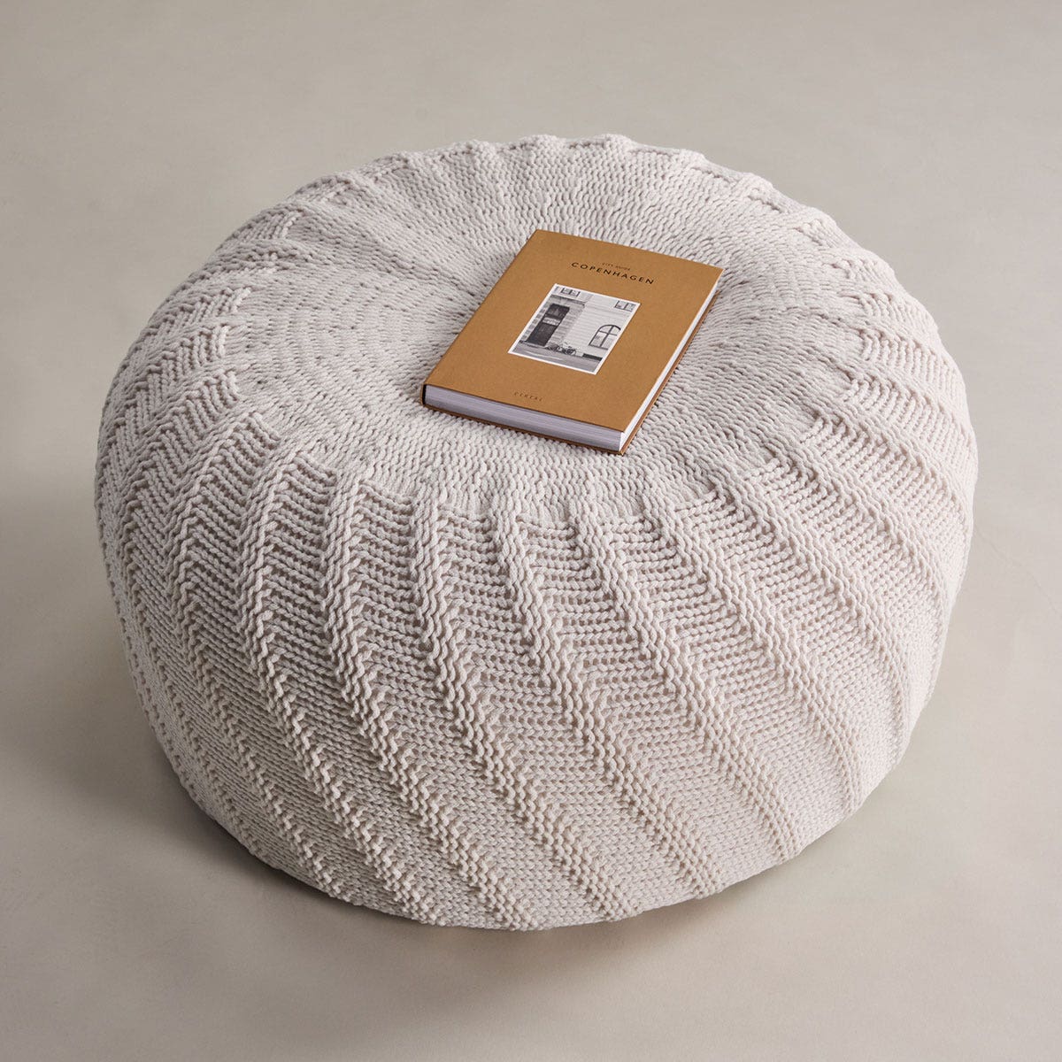 - Ronde gebreide poef in crème kleur