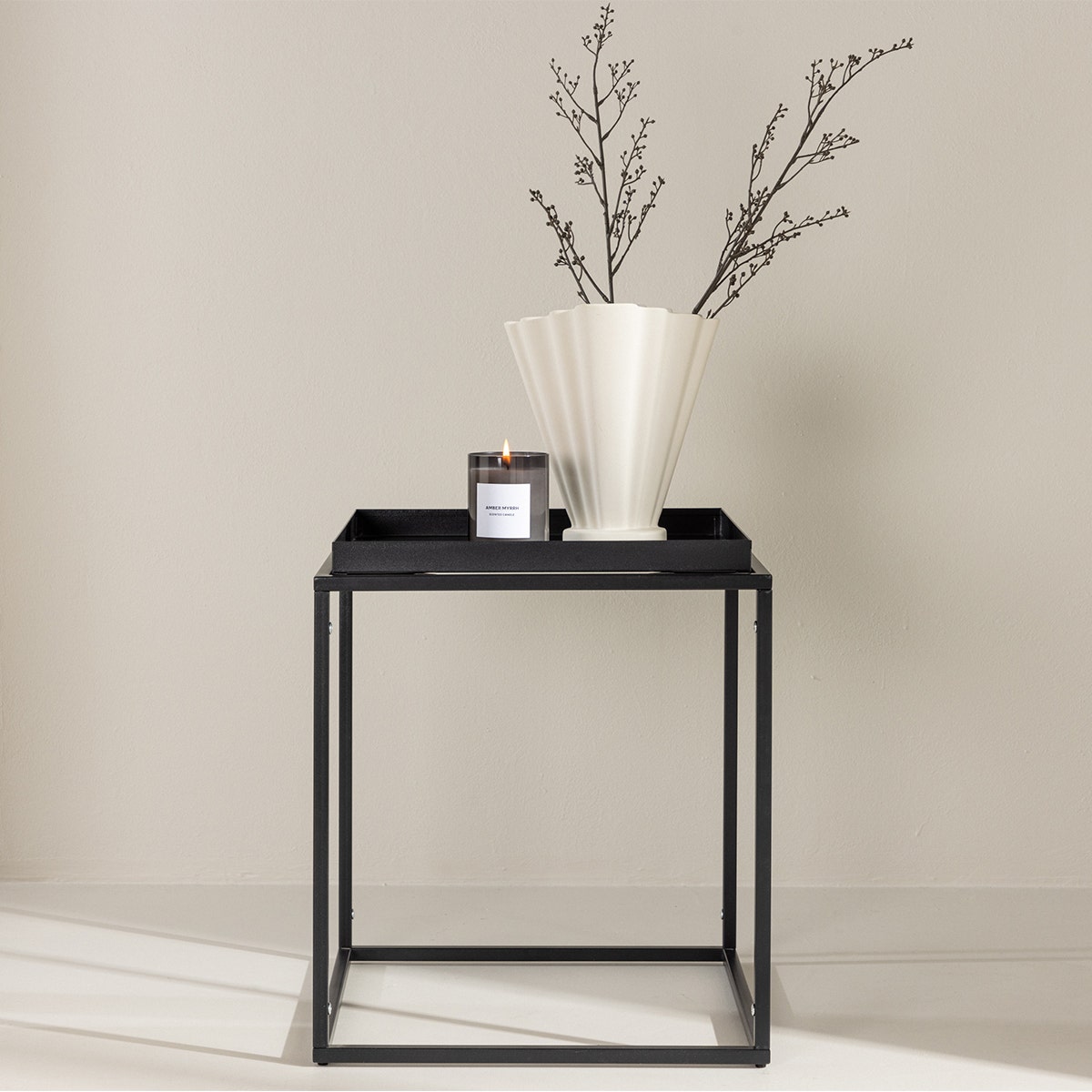 De bijzettafel heeft een vierkante vorm en is gemaakt van metaal. Dankzij de minimalistische frameconstructie heeft het bijzettafeltje een luchtige uitstraling, wat ideaal is in kleinere ruimtes. Het blad van deze vierkante bijzettafel heeft opstaande randen, waardoor je spullen zorgeloos op het blad kan stallen. Of je nu op zoek bent naar een handige plek voor je favoriete boek, een kopje koffie of decoratieve items, deze metalen bijzettafel biedt de perfecte oplossing.