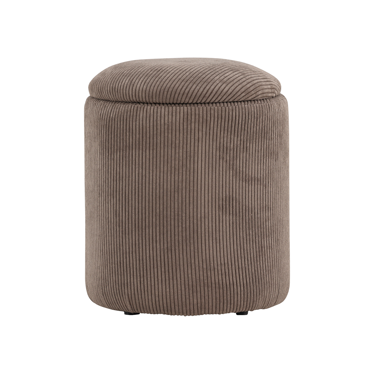 Nest living Ilja Ronde Ribstof Poef met Opbergruimte Ø 32 cm - Bruin