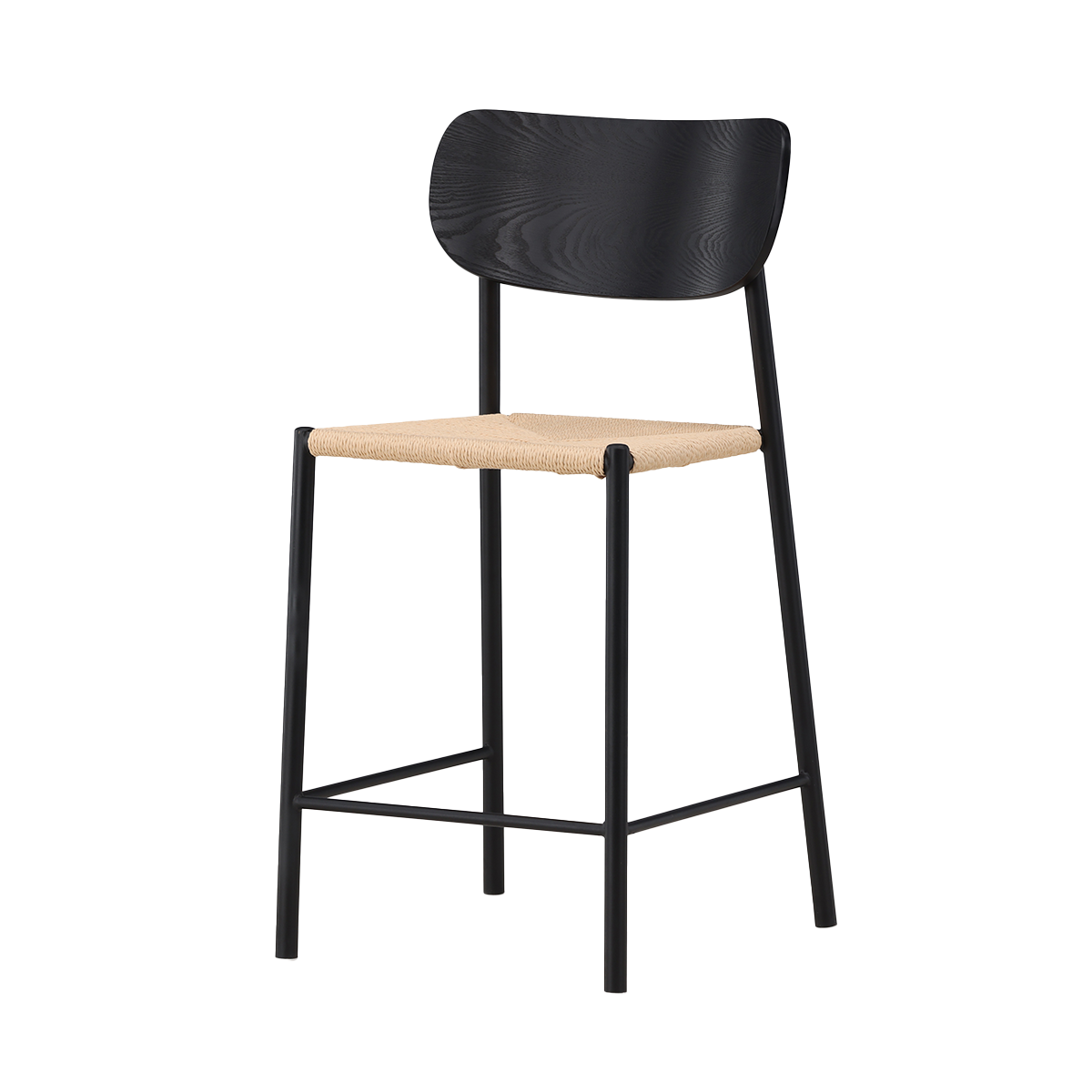 Nest living Rian Barkruk Met Rotan Zitting Zwart - 67 cm
