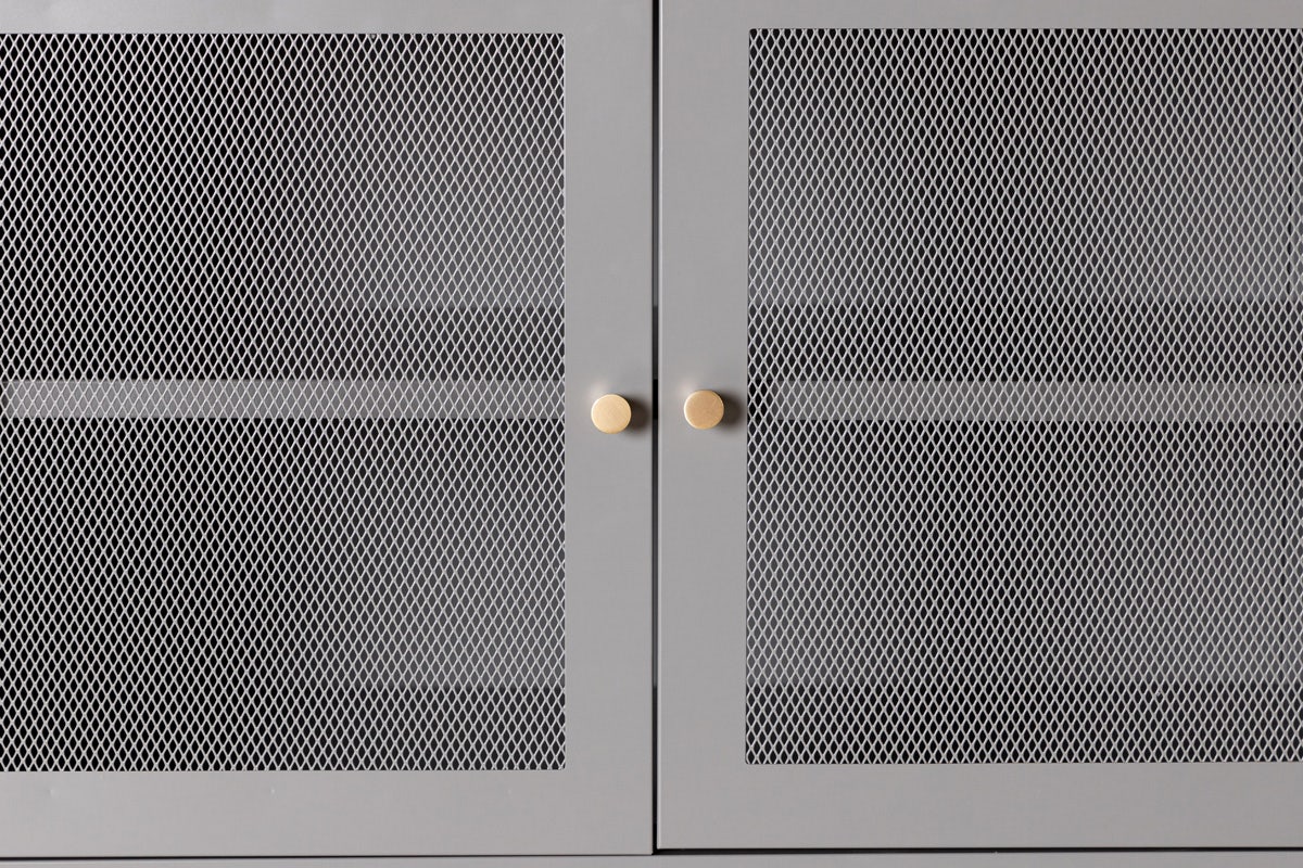 Het dressoir is volledig gemaakt van staal en is in beige en grijs verkrijgbaar. De drie deurtjes zijn afgewerkt met gaas, waardoor je mooie accessoires in de kast kan zien staan. De gouden deurknoppen zorgen voor een chique touch. De kast staat op smalle, hoge poten die ervoor zorgen dat het geheel luchtig oogt. De hoogte vanaf de grond tot aan het dressoir is 30 centimeter. Vul het Sita dressoir met serviesgoed, boeken of mooie decoraties en geniet van de mooie aanblik in je woonkamer.