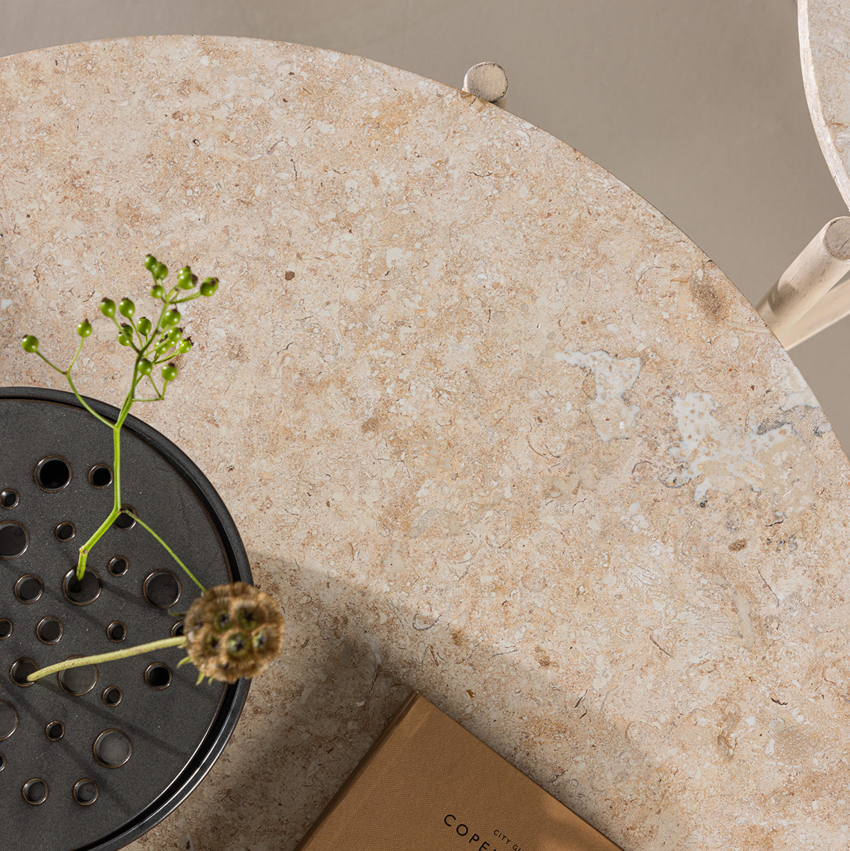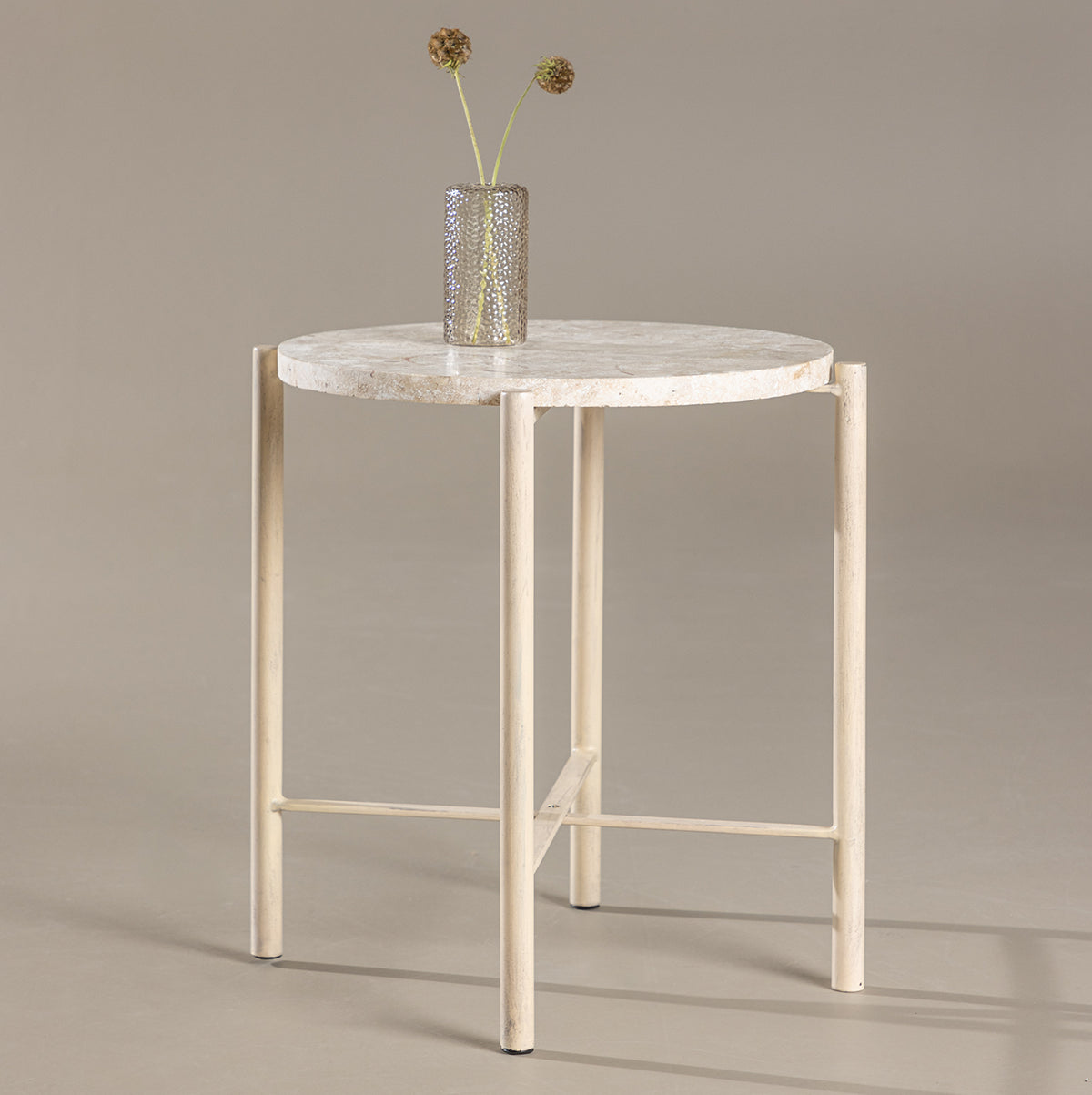 Nest living Thora Ronde Bijzettafel met Stenen Blad - Beige - Ø 40cm