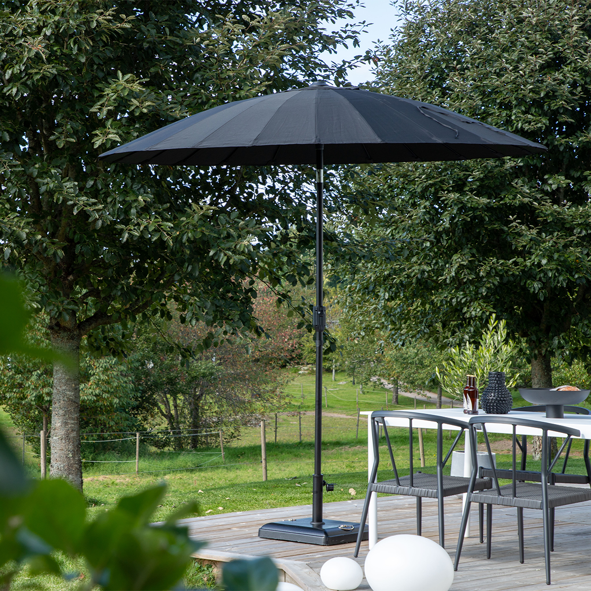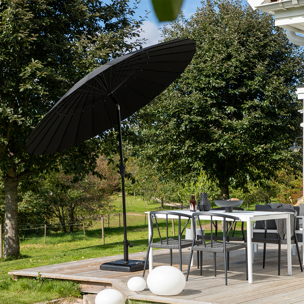 Met de Einar parasol van Nest Outdoor zit je altijd in de schaduw.
