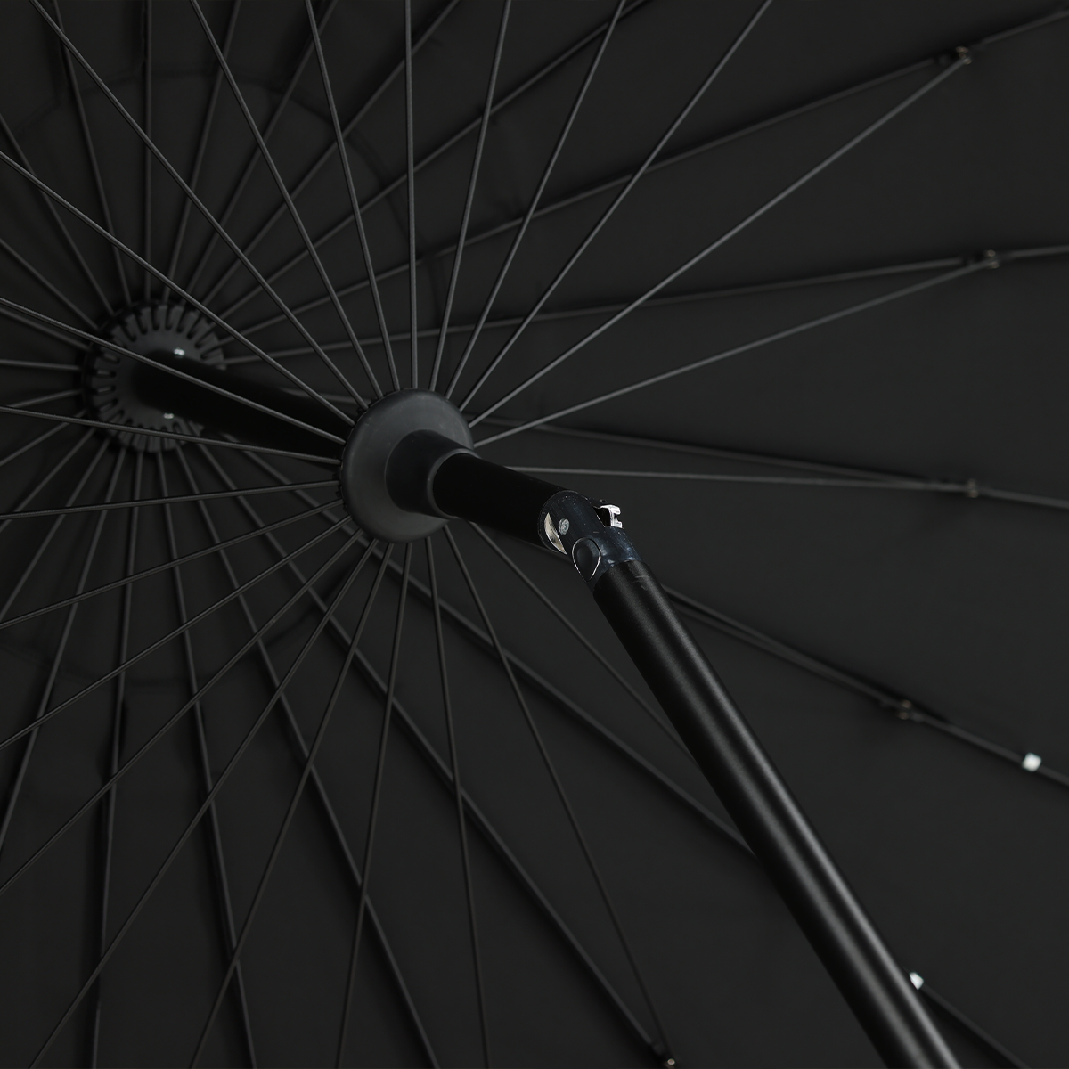 Deze grote parasol heeft een verstelbare stang met kantelfunctie, zodat je de parasol met de zon mee kan draaien. De paal en de baleinen van deze parasol zijn gemaakt van aluminium en het doek is gemaakt van polyester. Dankzij het lichte gewicht van de aluminium stang is de parasol eenvoudig te verplaatsen en dit materiaal is bestand tegen alle weersomstandigheden, waardoor het weinig tot geen onderhoud vereist. De parasol opent gemakkelijk met behulp van de zwengel en is bovendien voorzien van een windvanger. De Einar parasol is in twee kleuren verkrijgbaar.