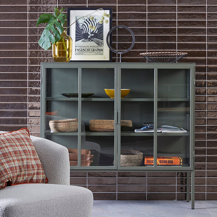 - Stoere vitrinekast van H 130 x B 122 x D 36 cm
