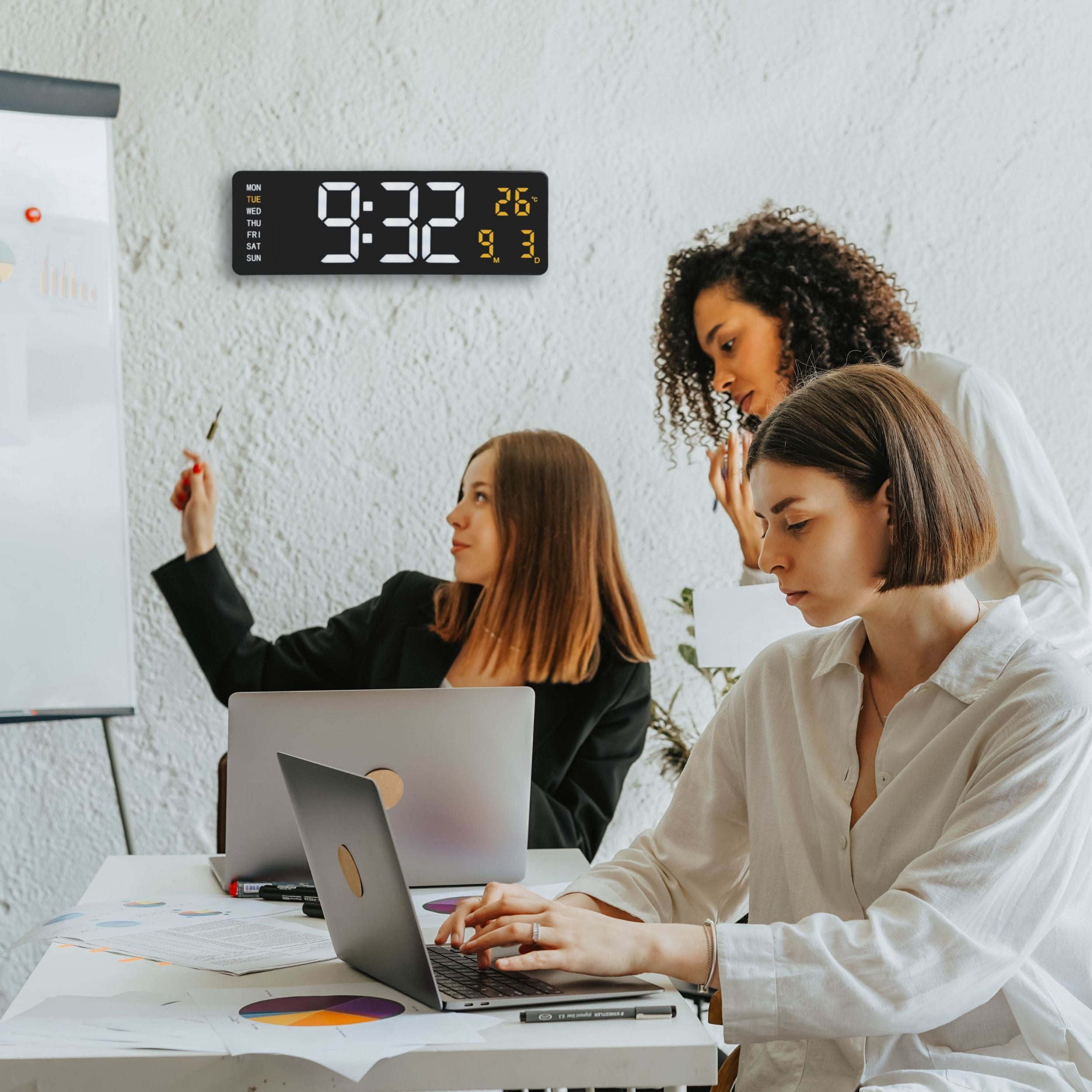 NeXtime - Digitale wand|alarmklok 38,8x12,9x3,2cm-Zwart-ABS-NeXtime