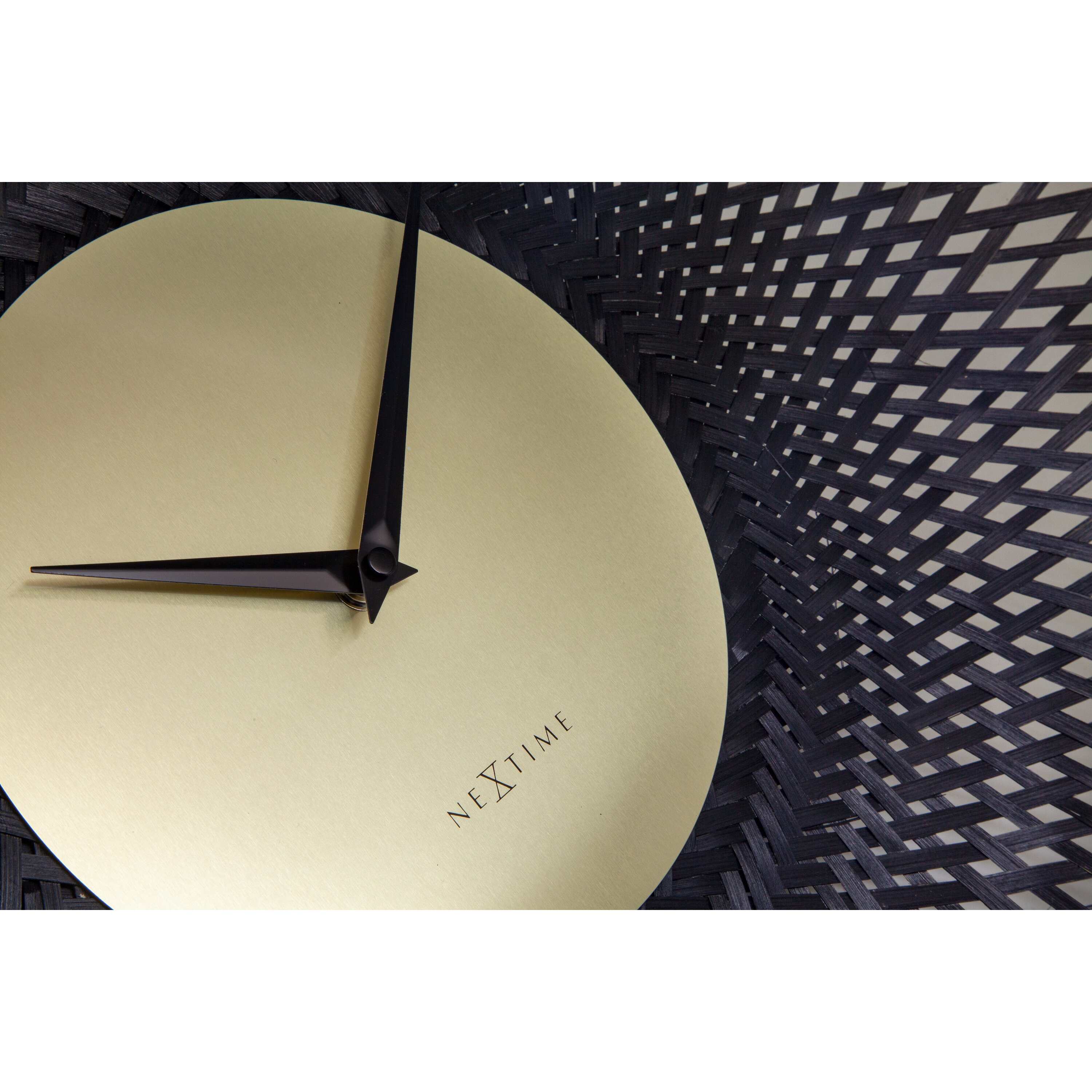 NeXtime - Wandklok 60 cm - Stille - Zwart - Bamboe - NeXtime 'Vortex'