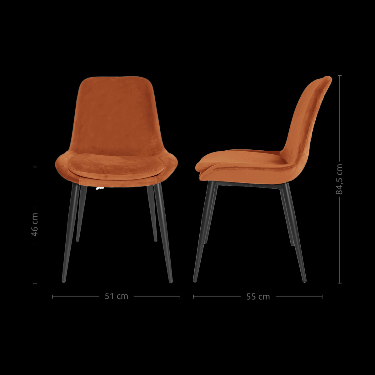 Bovendien zorgt deze fluwelen eetkamerstoel voor een kleurrijke sfeer in huis. De stoel is bekleed met een zachte fluwelen stof voor gegarandeerd comfort! Deze eetkamerstoel is verkrijgbaar in meerdere kleuren, waardoor er altijd kleur is die perfect in jouw interieur past. De velvet eetkamerstoel is gemaakt van een zachte stof en heeft een mat zwart metalen onderstel. De combinatie van metaal en velvet zorgen ervoor dat de eetkamerstoel een chique uitstraling heeft. Het onderstel is gemaakt van stevig metaal, zodat de stoel wel tegen een stootje kan!